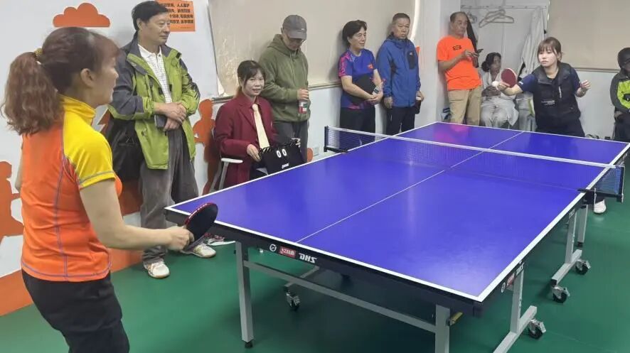 三张乒乓球台前,参赛选手的面孔格外多元:既有头发花白却步伐矫健的退休阿姨、爷叔,也有趁着工作间隙来参赛的综合执法队年轻小伙。直板快攻、横拍相持、大力扣杀……平日里深藏不露的社区居民,此刻全成了光芒四射的“民星”高手。