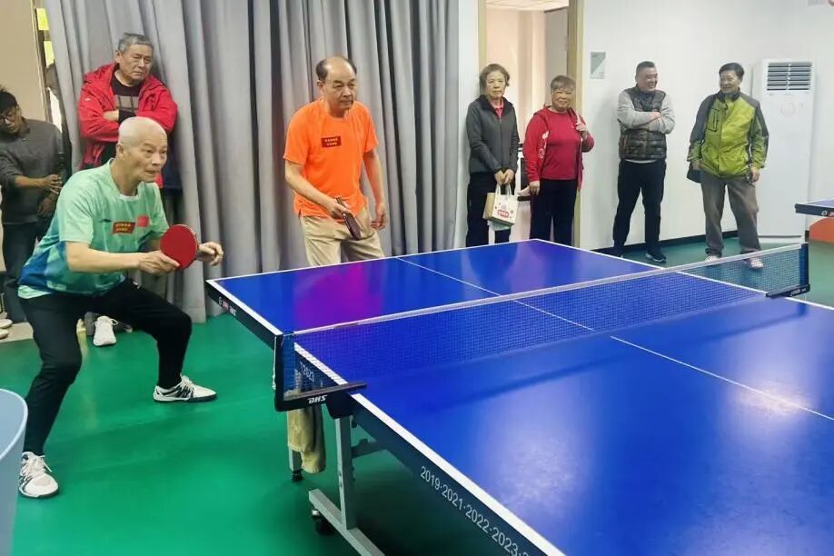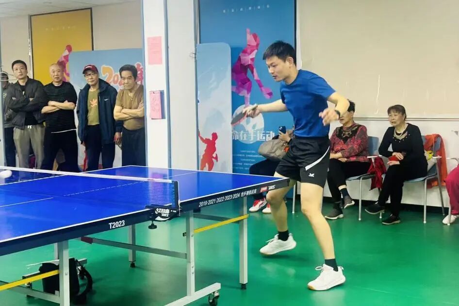 “好球!”“漂亮,拉一个!”4月8日,杨浦区延吉社区第三睦邻中心内人声鼎沸,清脆的乒乓球击打声与热烈的喝彩声交织,奏响了一曲充满活力的春日交响。