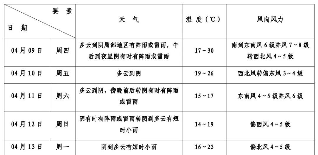 本区未来十天天气预报
