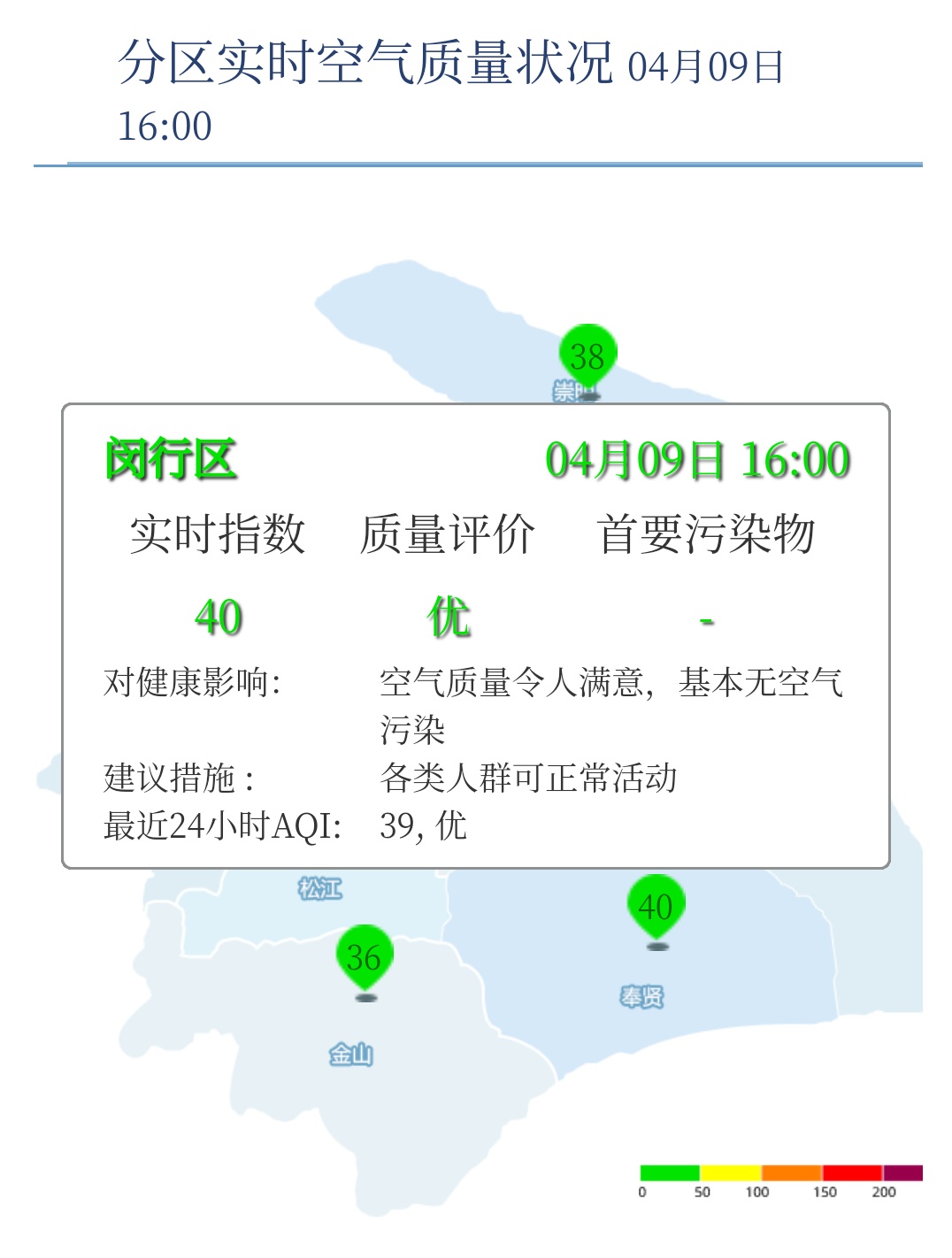 闵行区AQI为40,优,