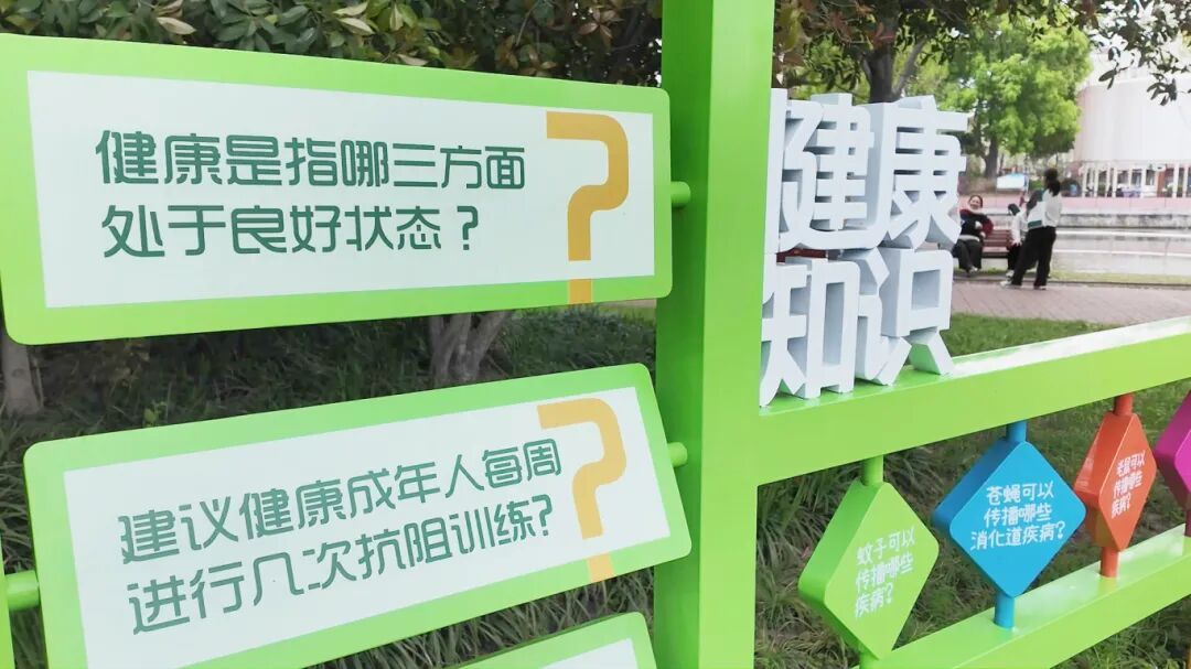 健身步道旁,一阵清脆的童声传来。“问题:每天应该吃几种颜色的蔬菜?答案:5种以上!”儿童健康乐园里,家长带着孩子,围着两组趣味健康知识问答翻转牌你问我答。