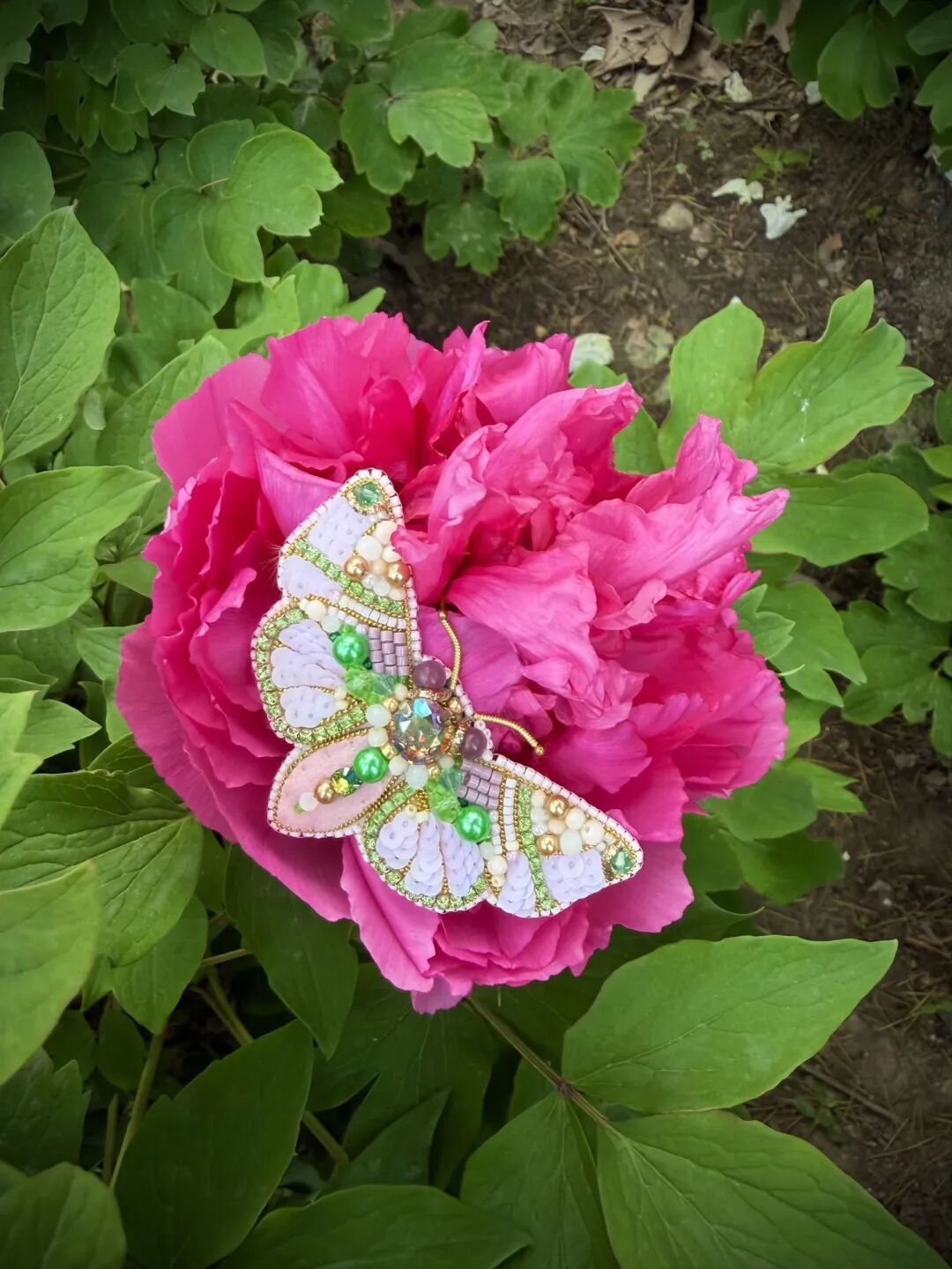 家中有轻巧精致的胸针,拿来放在花蕾边上。一蝶一花,一动一静相得益彰。
