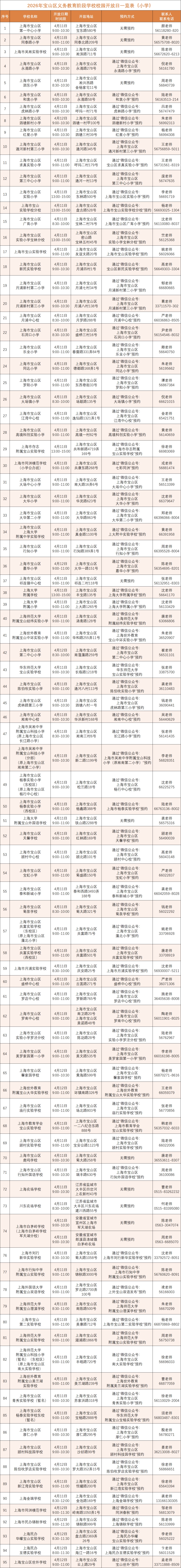 注:具体信息以宝山区政府门户网站教育局专栏为准