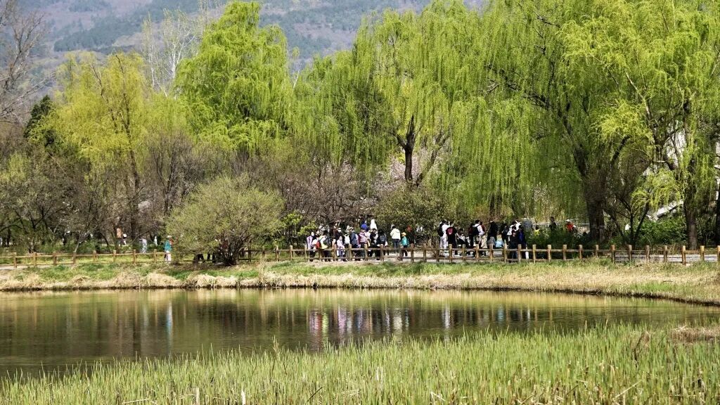 清明假期,人们来到户外踏青、赏花,感受美好春光。