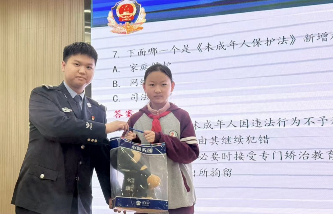 民警结合青少年身心特点与校园真实案例,用通俗易懂的语言展开宣讲。围绕《中华人民共和国未成年人保护法》重点条款进行解读,清晰阐释未成年人合法权益及家庭、学校、社会的保护责任,帮助学生知法懂法,为健康成长筑牢坚实法治屏障。