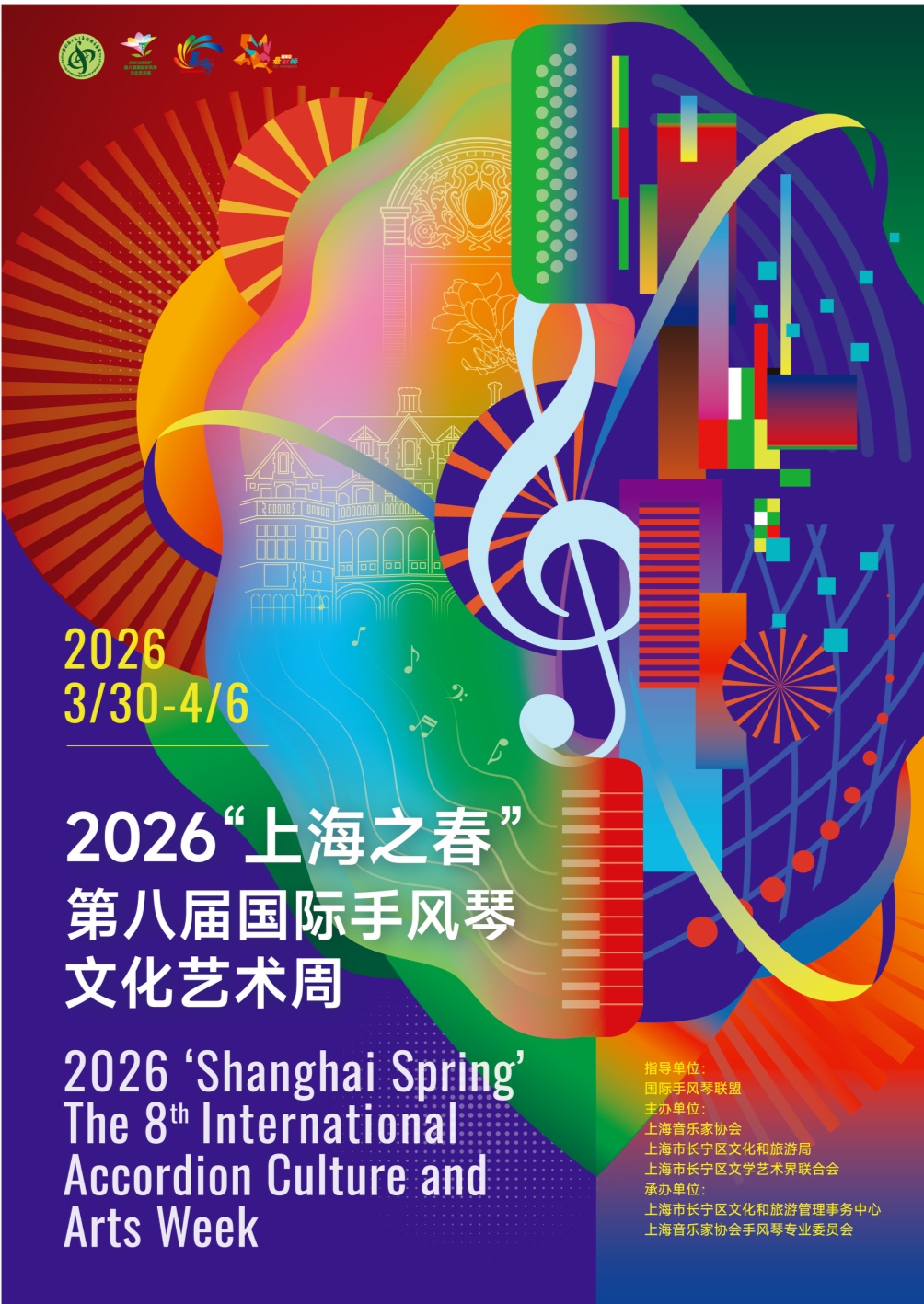 艺术周以文化为引领,着力构建“文商旅”协同发展模式,通过“艺术+产业”的双向驱动,实现文化价值与经济效益双赢。在文化供给方面,“最虹桥·风起海上”长三角及全国优秀手风琴节目展演以多元化演奏形式展现海派文化与手风琴艺术的交融魅力,让市民群众在家门口享受高品质文化服务,切实推动优质文化资源直达基层。在消费促进方面,鼓励春秋、上航旅行社开发“手风琴艺术地图”特色旅游产品,通过市场化运作打通“文化体验-旅游观光-住宿消费”产业链条,带动区域餐饮、住宿、零售等业态发展,让市民游客在梧桐树影间读懂长宁故事,持续拓展文化消费新场景。同时,活动推动文化机构、旅游企业、商业主体建立长期合作机制,以文旅活动为商业赋能,探索“文商旅体展绿”一体化发展路径,为区域高质量发展注入持久动力。2026“上海之春”第八届国际手风琴文化艺术周以专业艺术水准为核心支撑,以多元场景构建为重要载体,以深度产业联动为关键路径,充分发挥品牌辐射作用,实现文化传播效能提升和旅游引流效应释放的协同共进,助力上海社会主义国际文化大都市建设。