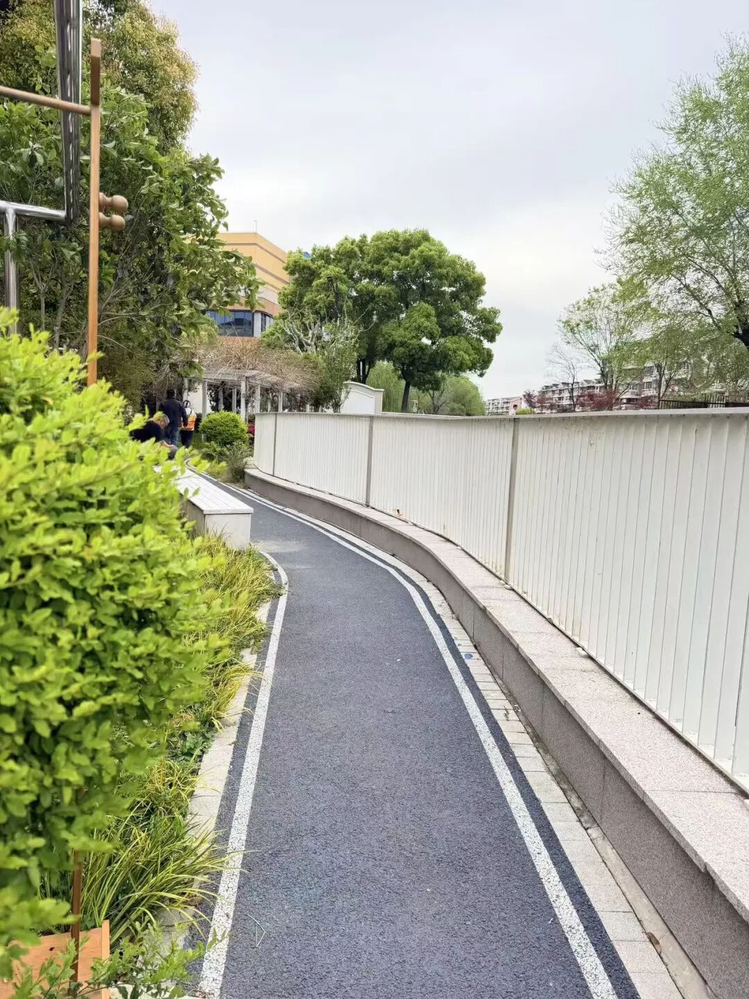 漫步兴霞,一条贯穿小区的沿河休闲步道格外引人注目。两侧绿化葱郁,推窗见绿,出门入园,原本杂乱的河岸如今串联起生态与休闲的惬意时光。而在不起眼的角落,非机动车棚也已焕然一新,地坪平整、墙面洁白,告别了往日的逼仄杂乱。