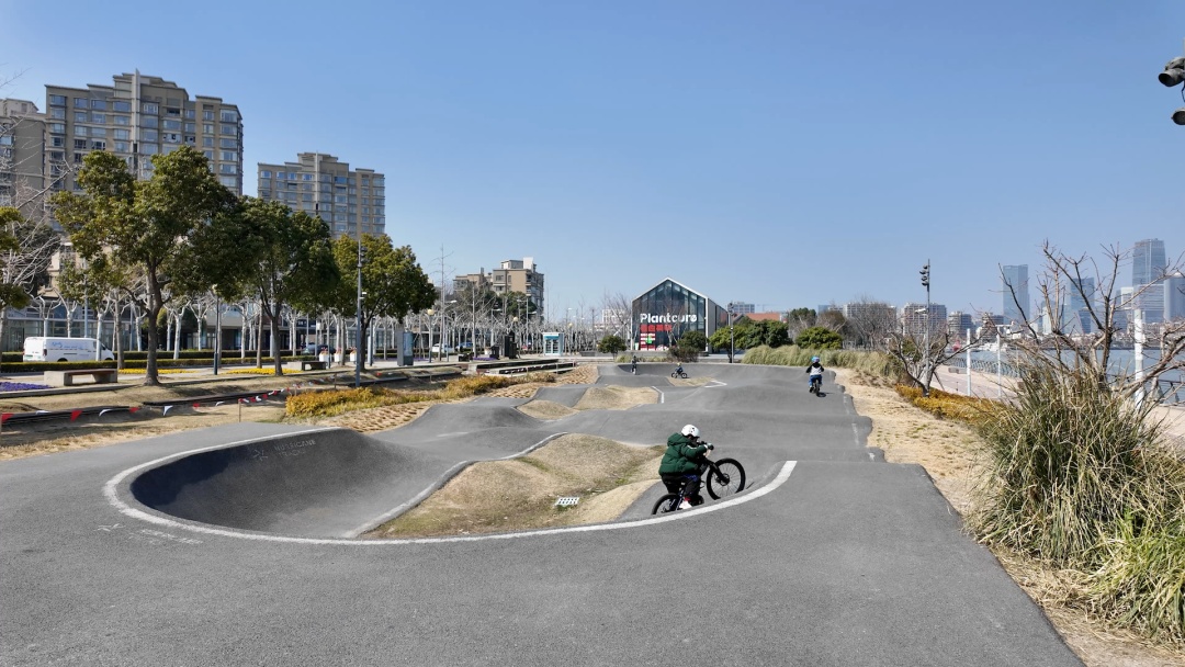 场馆对面有一片小轮车运动场地,每到周末,就有很多小朋友来这里尽情玩耍、释放活力。