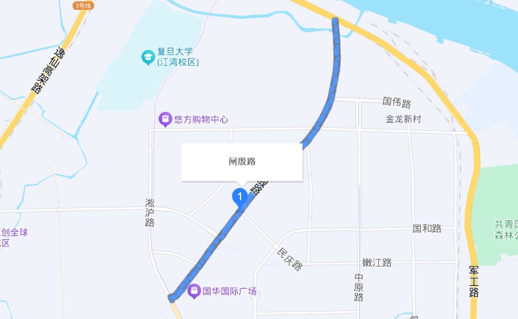 闸殷路东北起军工路,西南至淞沪路。1925年闸北水电公司始筑,因在殷行乡内,故各取首字为名。