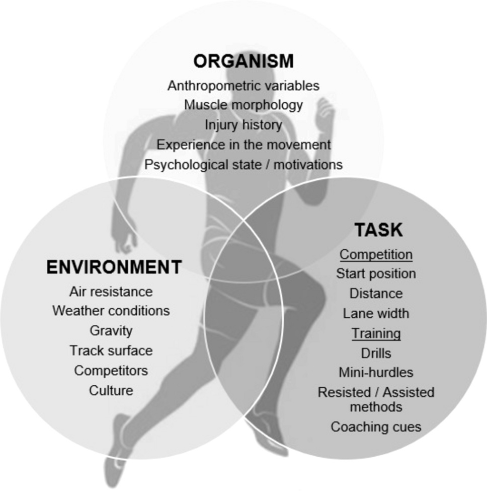 短跑成绩不是力量、步频等指标的线性叠加,而是机体(身高、肢体长度、疲劳状态等)、任务(目标、器械、教练指令等)、环境(赛道、天气、文化等)这3类约束共同限定了每位运动员的“动作可能性空间”。