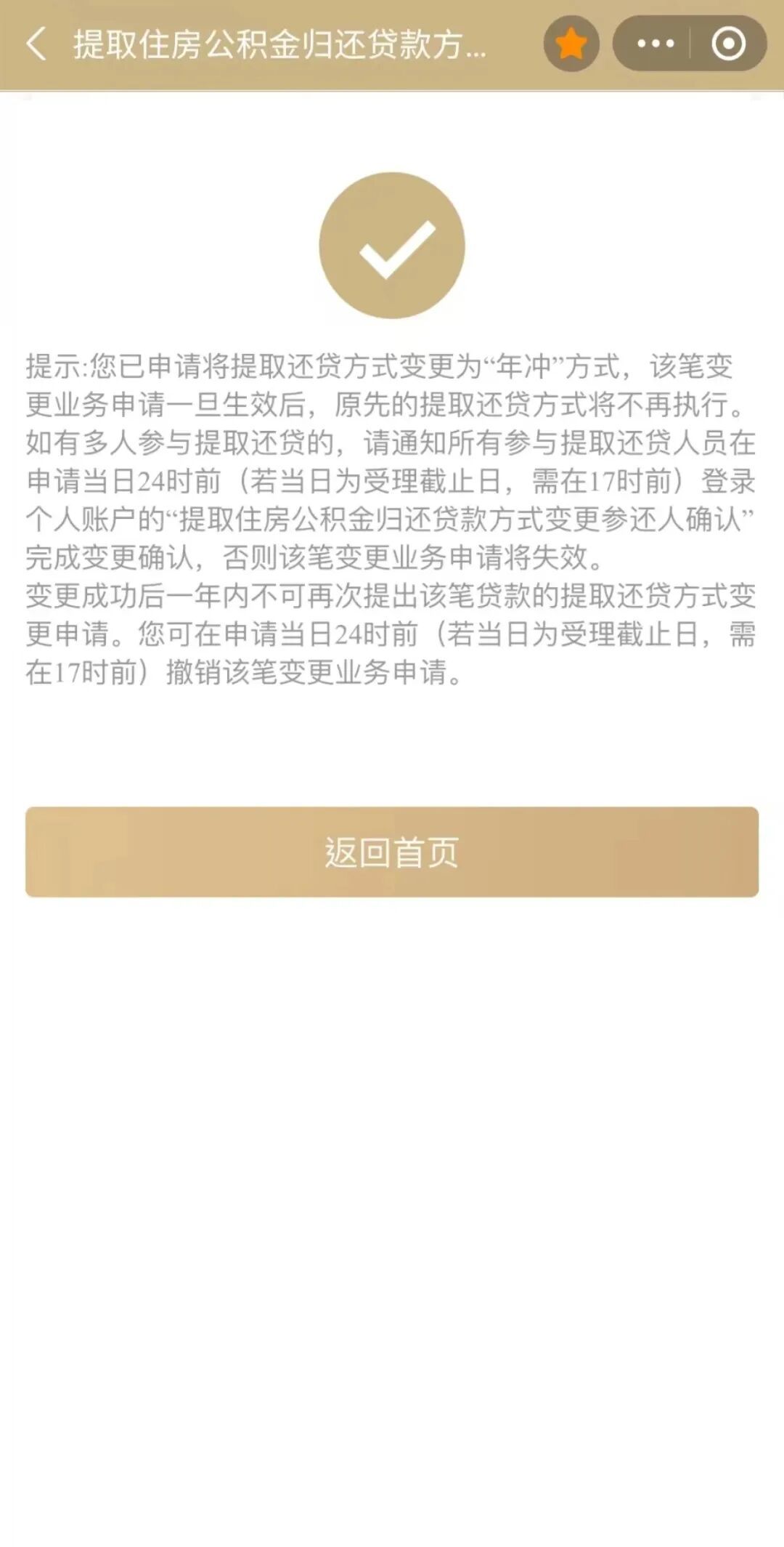 7、经所有参与提取还贷人员确认后,变更申请即时生效,借款人可以在申请当日24时前(若申请当日为提取还贷受理截止日,需在17时前)通过“提取住房公积金归还贷款方式变更(冲还贷方式变更)”服务“查询和撤销”入口撤销变更。