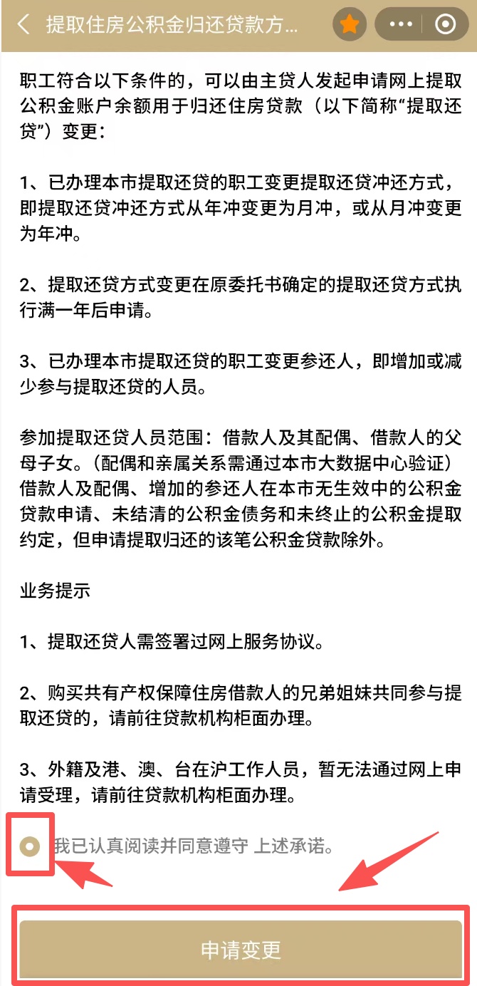 所有参与提取还贷人员必须在申请当日24时前登录个人账户的提取还贷方式变更业务完成变更确认,如申请当日为提取还贷受理截止日,所有参与提取还贷人员必须在当日17时前完成确认(每月的受理截止日以市公积金中心公告为准),否则本次提取还贷方式变更为无效申请;