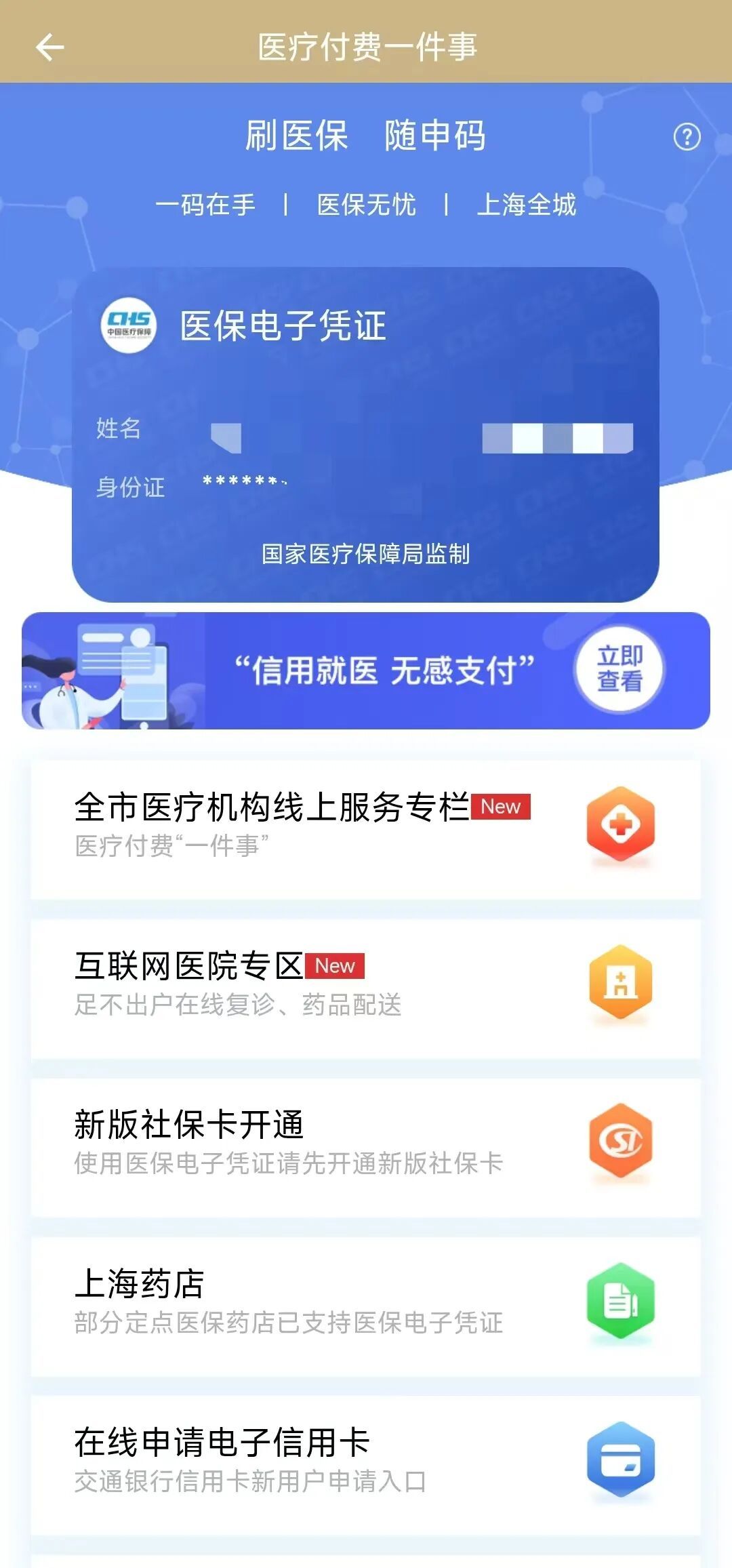 打开“随申办市民云” (APP/微信小程序/支付宝小程序),首页搜索“医保电子凭证”,选择“医保电子凭证”服务。