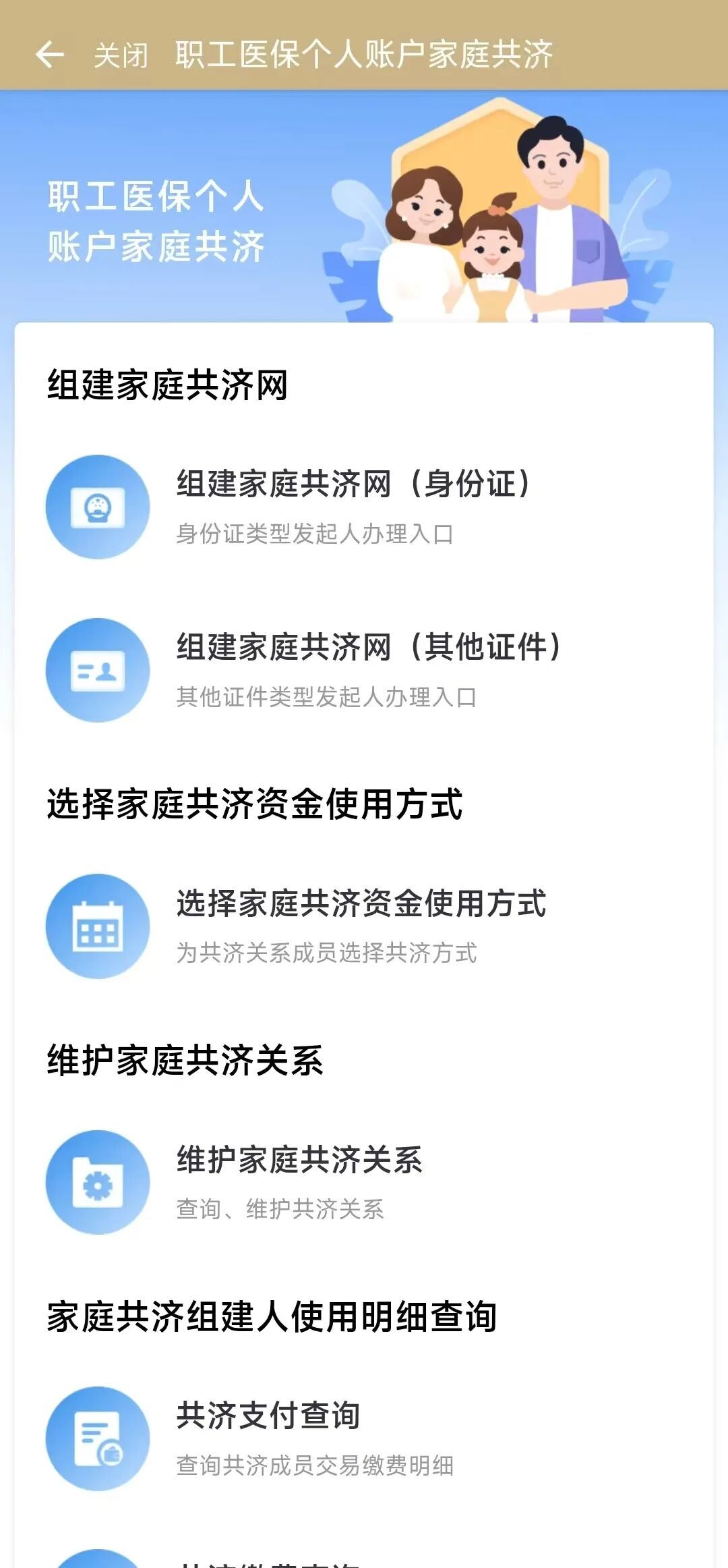 输入组建人信息、共济关系成员后发起组建,组建成功后选择共济方式即可。