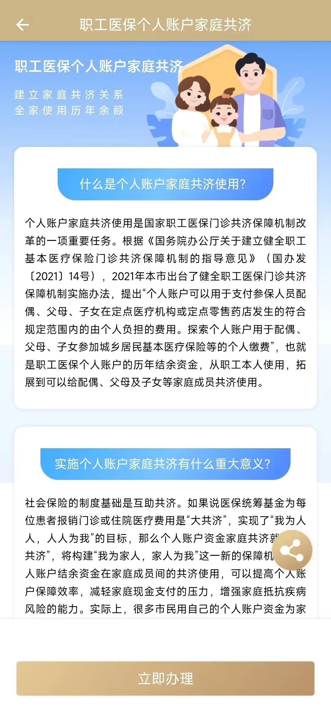 打开“随申办市民云” (APP/微信小程序/支付宝小程序),首页搜索“医保共济”,选择“医保账户家庭共济”服务。