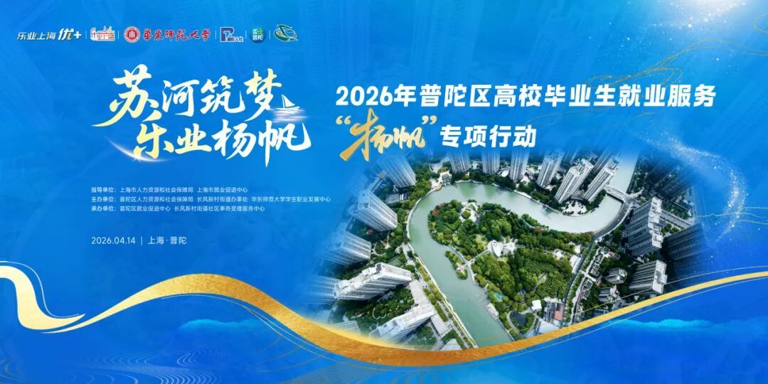 为贯彻落实党中央、国务院和市委、市政府关于稳就业的决策部署,聚焦高校毕业生等重点群体就业服务需求,强化重点群体就业服务,畅通求职招聘渠道,“苏河筑梦 乐业扬帆”——2026年普陀区高校毕业生就业服务“扬帆”专项行动惊喜来袭。 活动预告 ► 面向人群 ► 高校毕业学年学生或在校学生 离校两年内未就业高校毕业生 其他各类青年求职群体 ► 活动时间 ► 2026年4月14日(周二) 14:15-16:00 ► 活动地点 ► 华东师范大学普陀校区 大学生活动中心二层篮球馆 (金沙江路145号) ► 周边交通 ► 地铁3、4号线(金沙江路站) ► 温馨提示 ► 现场需扫描身份证入场 面试者需携带个人简历、身份证件 等应聘材料