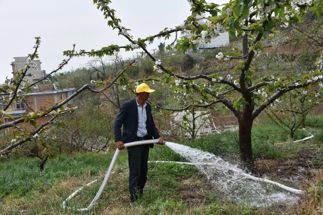 果农在给樱桃树浇水