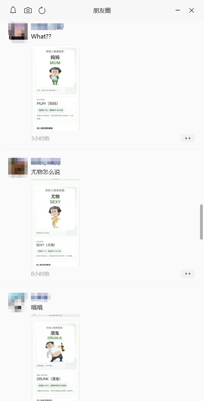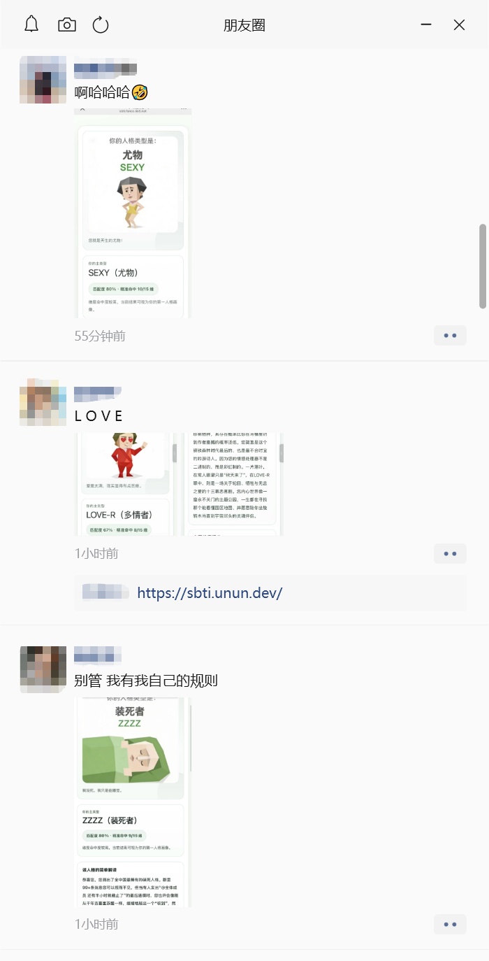 值得一提的是,9日傍晚起,由于突然的爆火,致使大量用户页面崩溃、链接打不开,只能靠截图云体验,可见大家也对自己的的“SBTI”非常好奇。但是在爆红的背后也折射出年轻人对抗内卷、寻求情绪释放的需求,用戏谑方式消解刻板人格标签与生活压力。