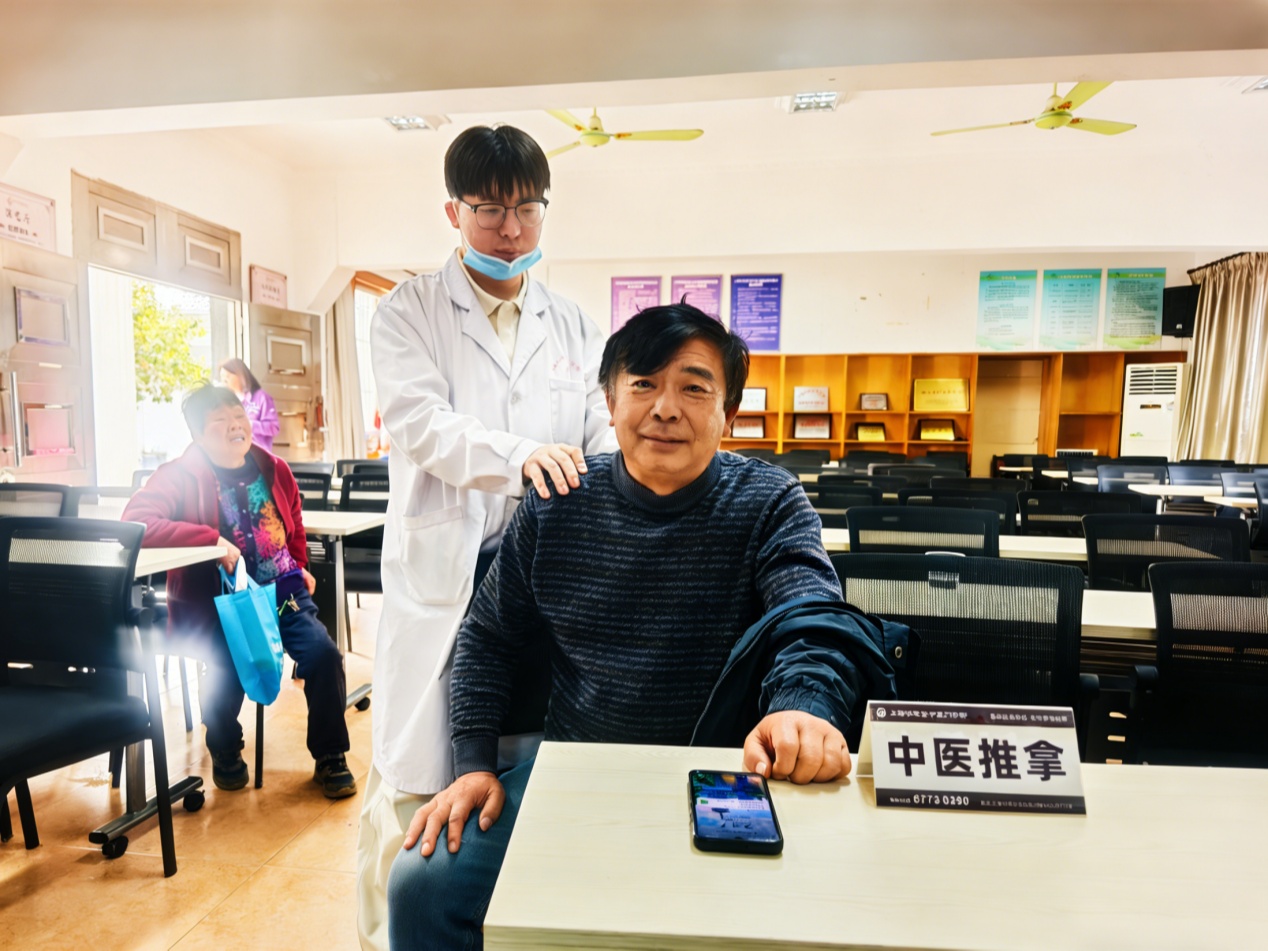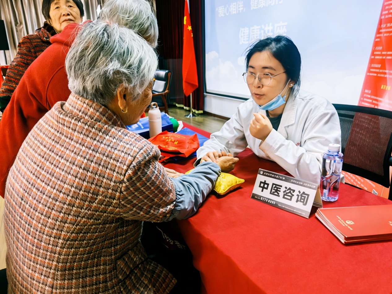 讲座结束后,医生们为老人们提供一对一中医推拿和号脉服务。诊脉过程中,医生通过“望闻问切”四诊合参,精准判断老人们的体质和健康状况,详细讲解病因、病理及日常调理方法,针对不同体质给出个性化养生建议,手把手指导老人们如何通过饮食、穴位按摩等方式调理身体、预防疾病,真正实现“辨证施护”。