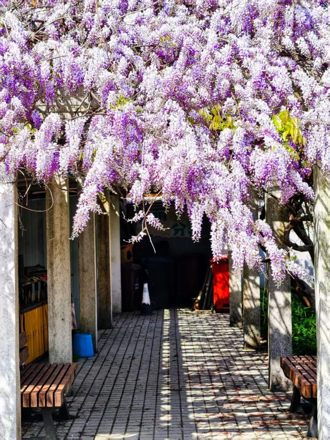 特色亮点:林荫道穿梭、紫藤花廊打卡、黄浦江江景骑行、工业风地标拍照、春日花海邂逅