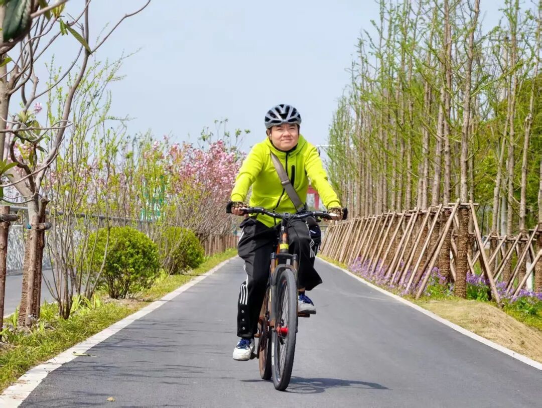 除了骑行,还可在滨江步道散步、野餐,享受春日时光。