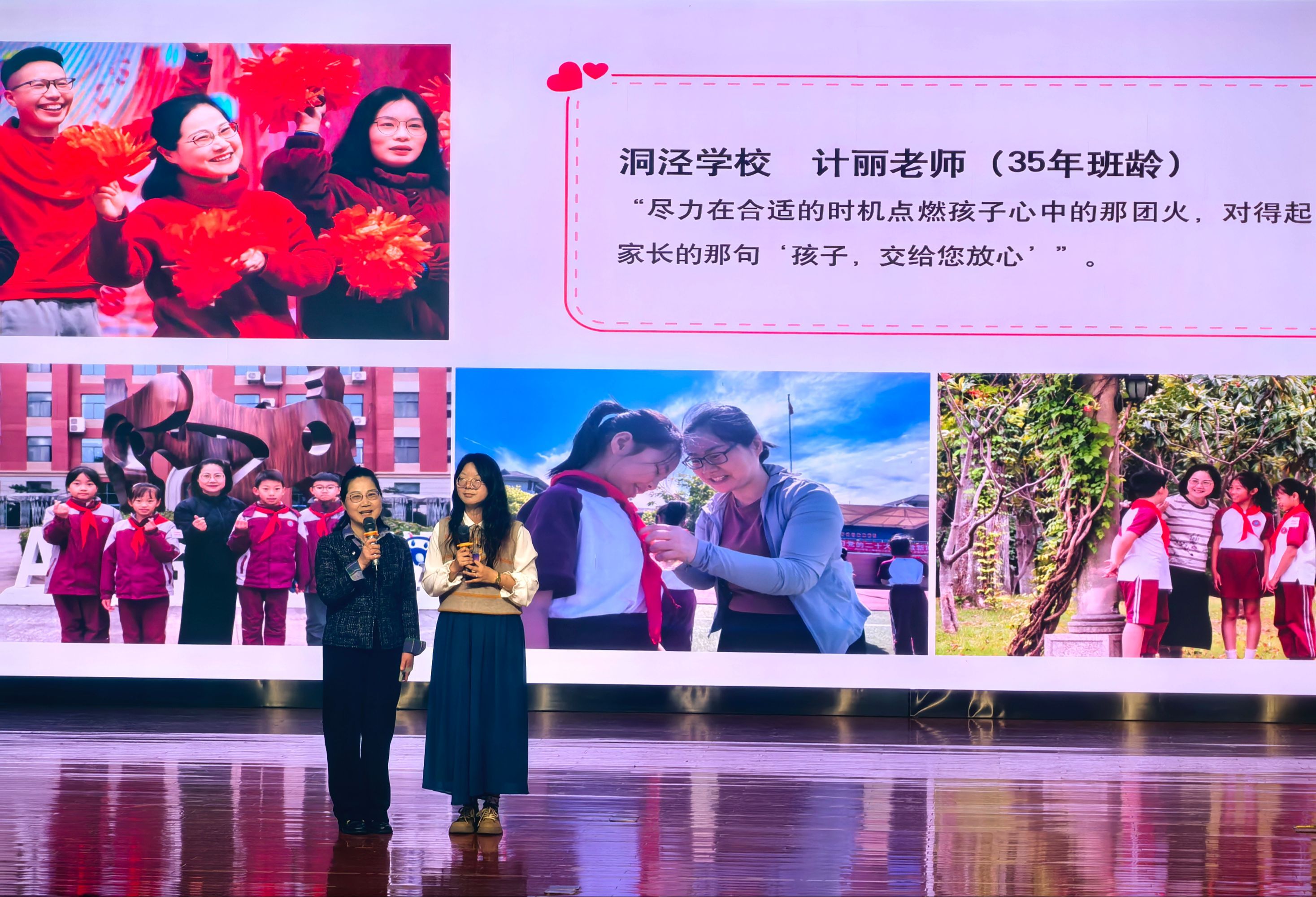 “不求惊天动地,只愿学生安好,桃李芬芳。”这是龚桂华的教育格言。从卷着裤脚、踏着泥泞走进村校的青涩青年,到骑着自行车奔波在乡间小路的中年教师,再到温柔对待每一名学生的温和长者,他的故事深深打动了在场的青年班主任。方塔小学副校长郭微娟作为故事讲述者,动情地说:“龚老师把最好的青春扎进讲台,把滚烫的初心融进岁岁年年,也把最朴实的教育力量,留在了每一名师生心中。”