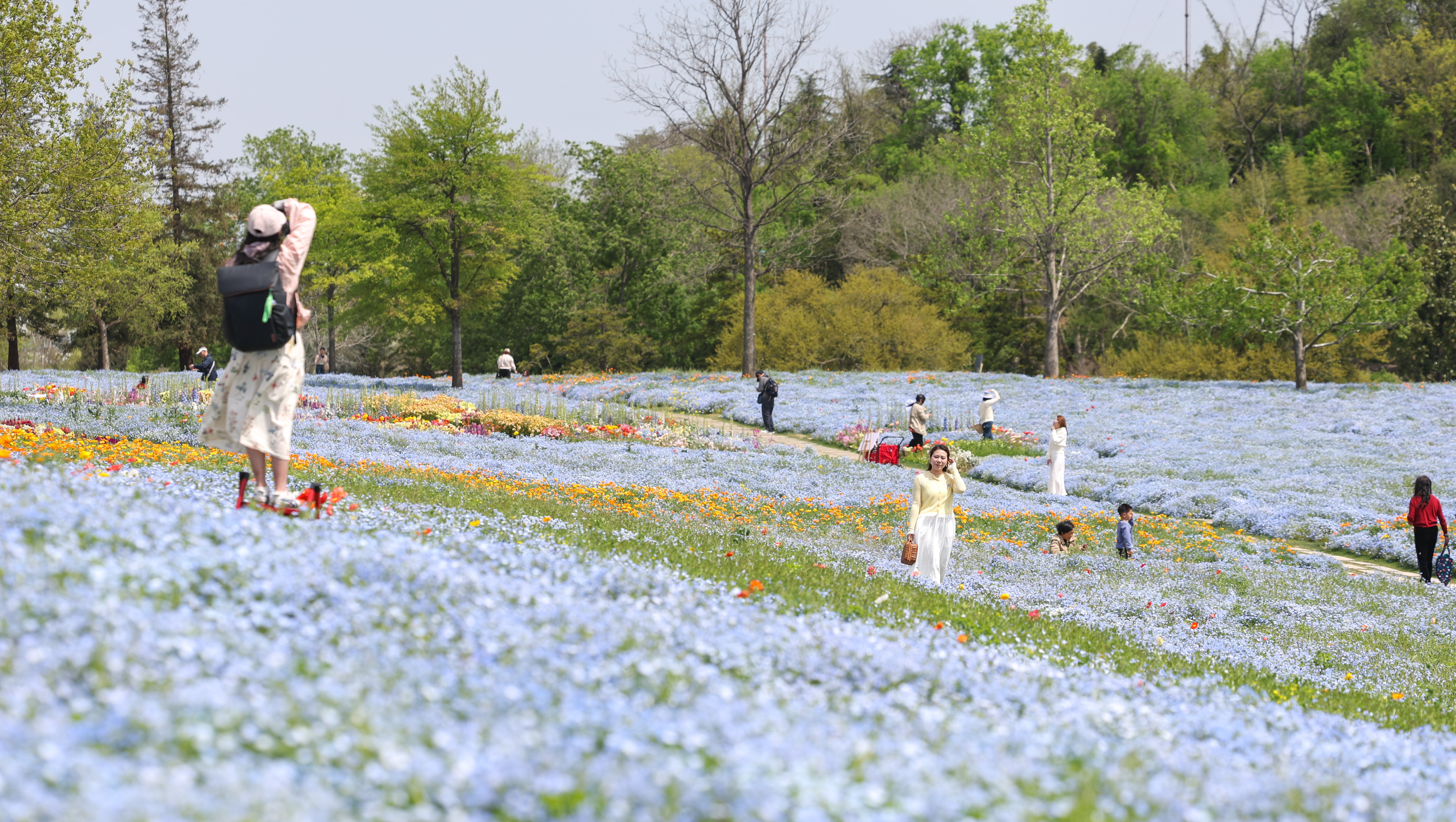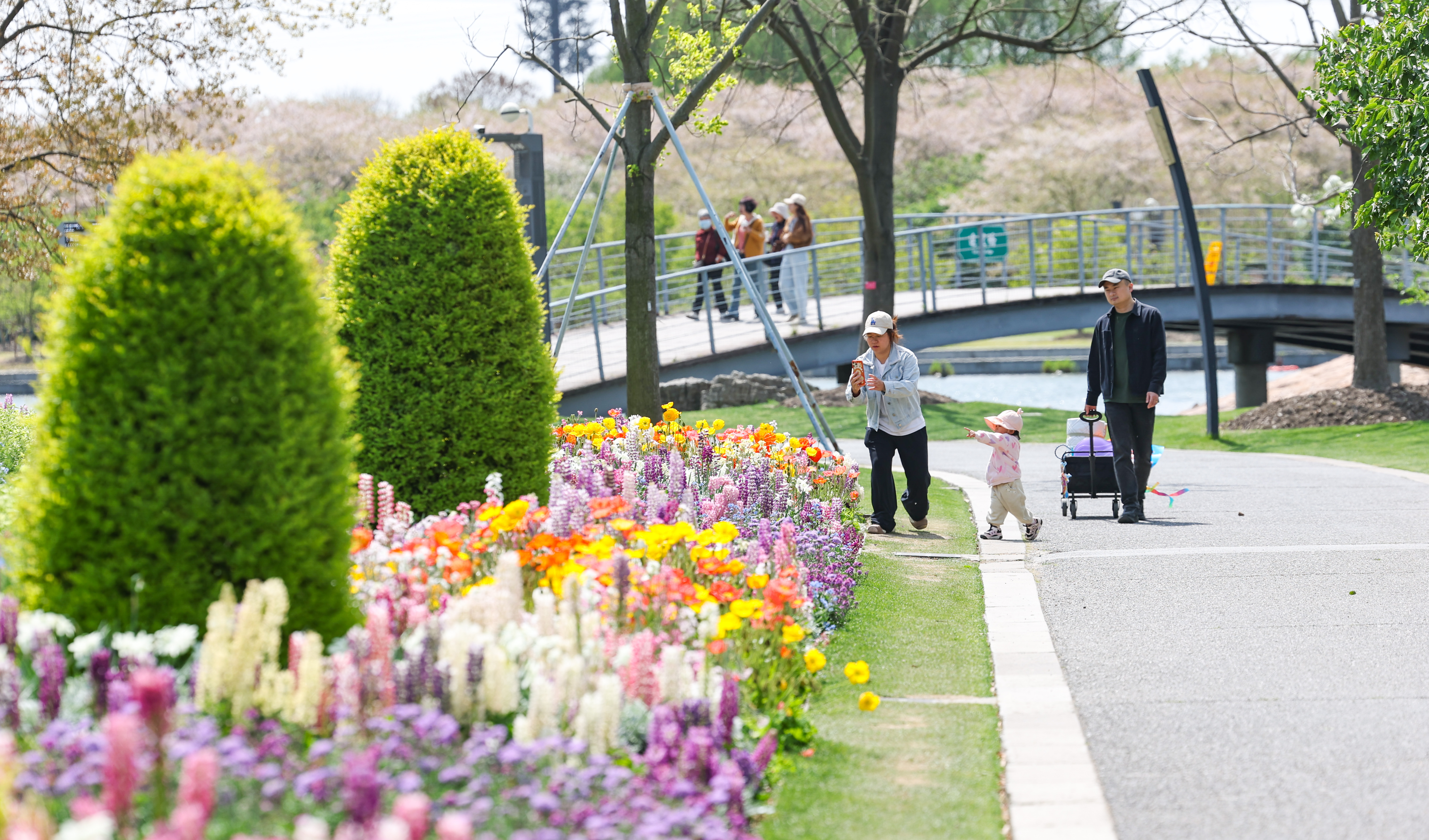 近日,随着气温回升,上海辰山植物园内樱花、喜林草、海棠等各类花卉竞相绽放,迎来春季最佳观赏期。五彩斑斓的花海吸引大批市民游客前来踏青赏花,定格春日美好。据了解,为了让市民游客沉浸式赏花,园区推出赏花地图、花期快报等便民服务,方便游客精准打卡赏花点位。 记者 姜辉辉 摄
