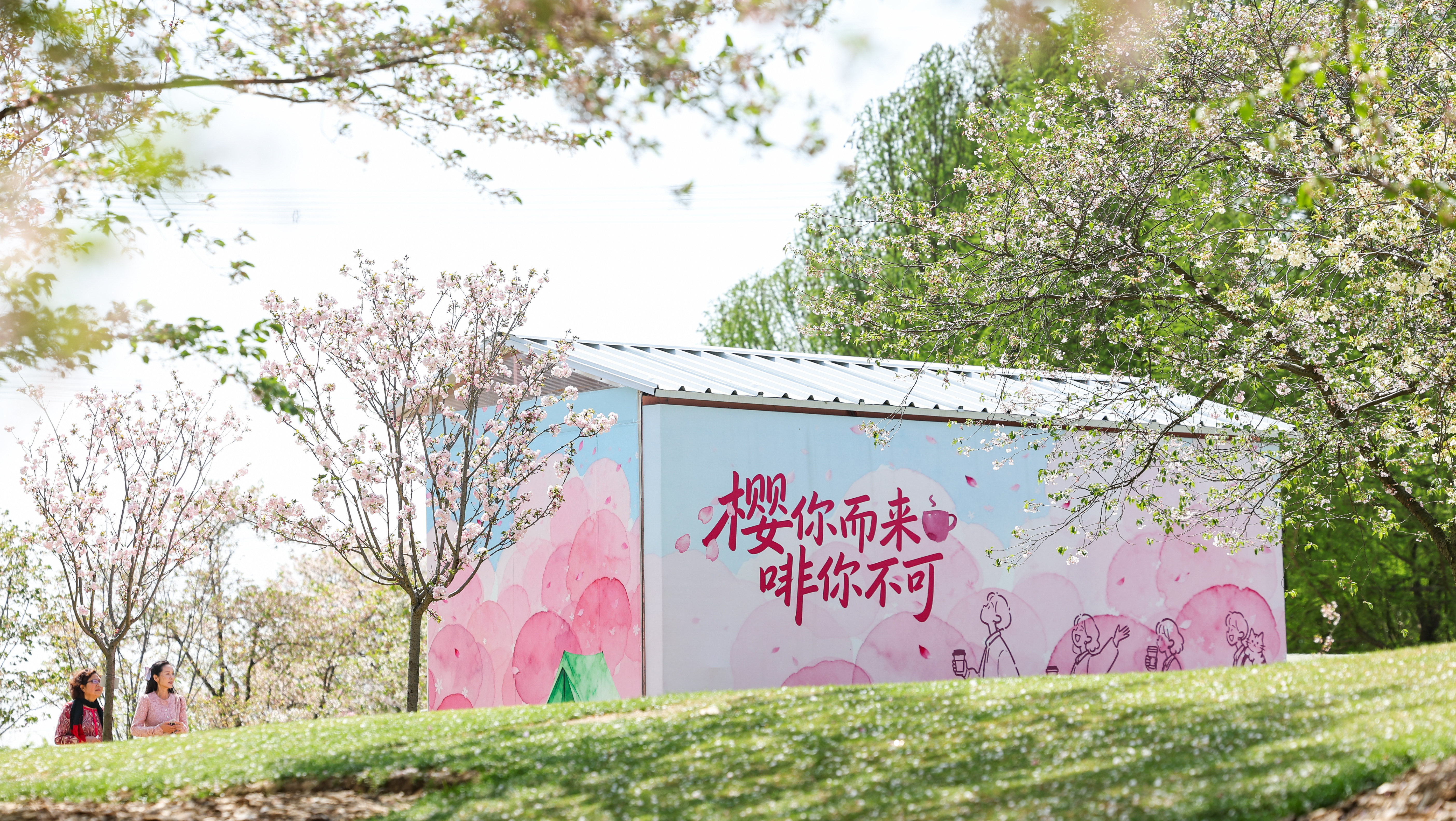 樱花竞相盛开,吸引游客驻足观赏拍照。