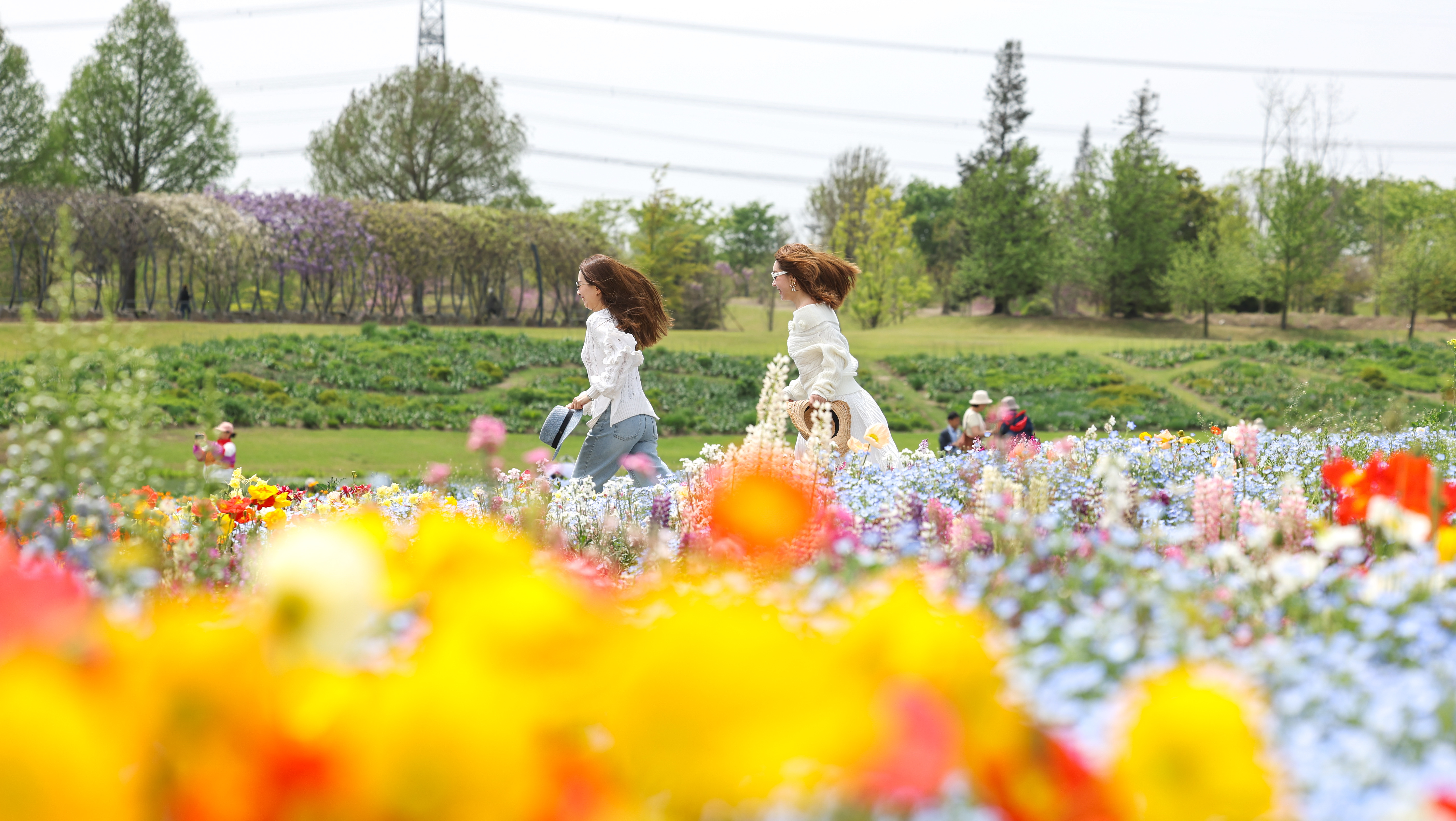 鲁冰花、虞美人等草花交织成绚烂花境,吸引游客驻足打卡。