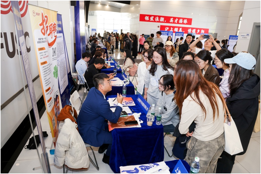 来自上海工程技术大学、上海建桥学院、上海城建职业学院、上海师范大学天华学院等高校的养老服务管理、护理、社会保障、健康服务与管理等相关专业的学生与用人单位面对面洽谈。