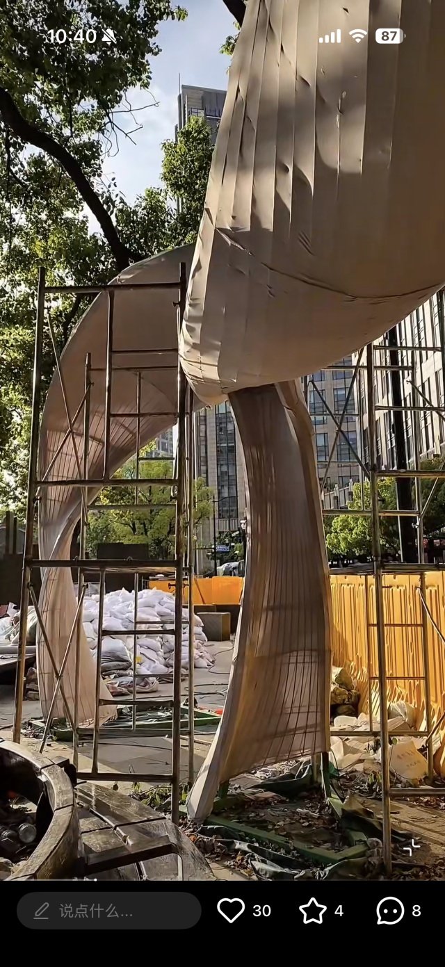 巨大的扭动种荚雕塑下