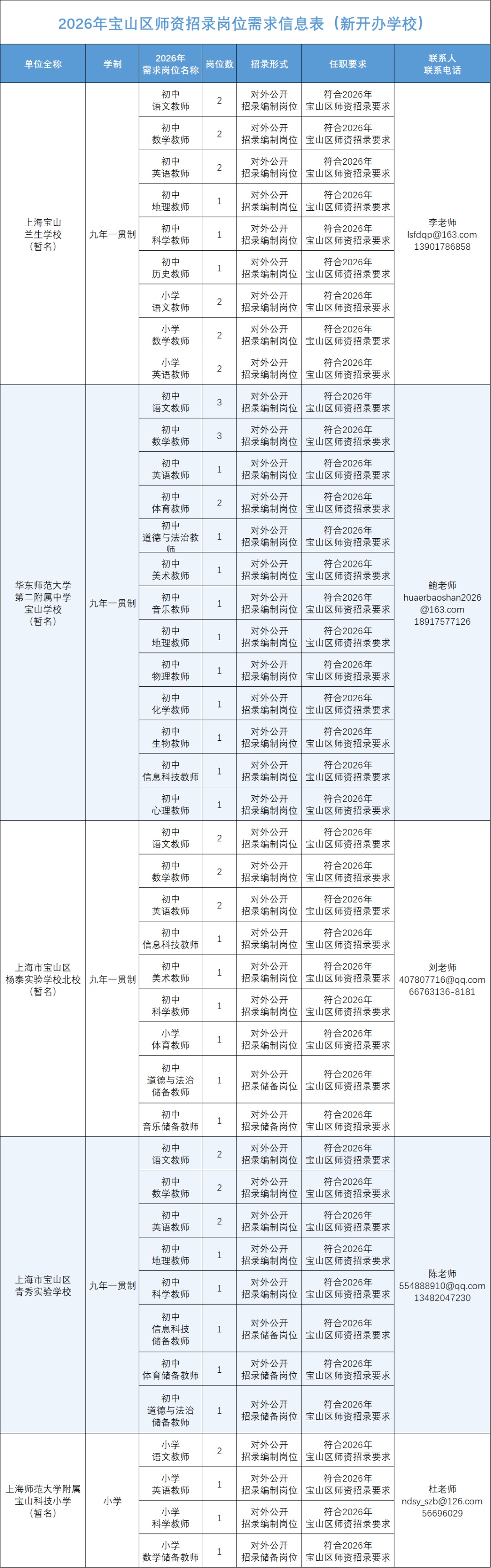 2026年上海市宝山区师资招聘公告(第二期)岗位及流程公布→