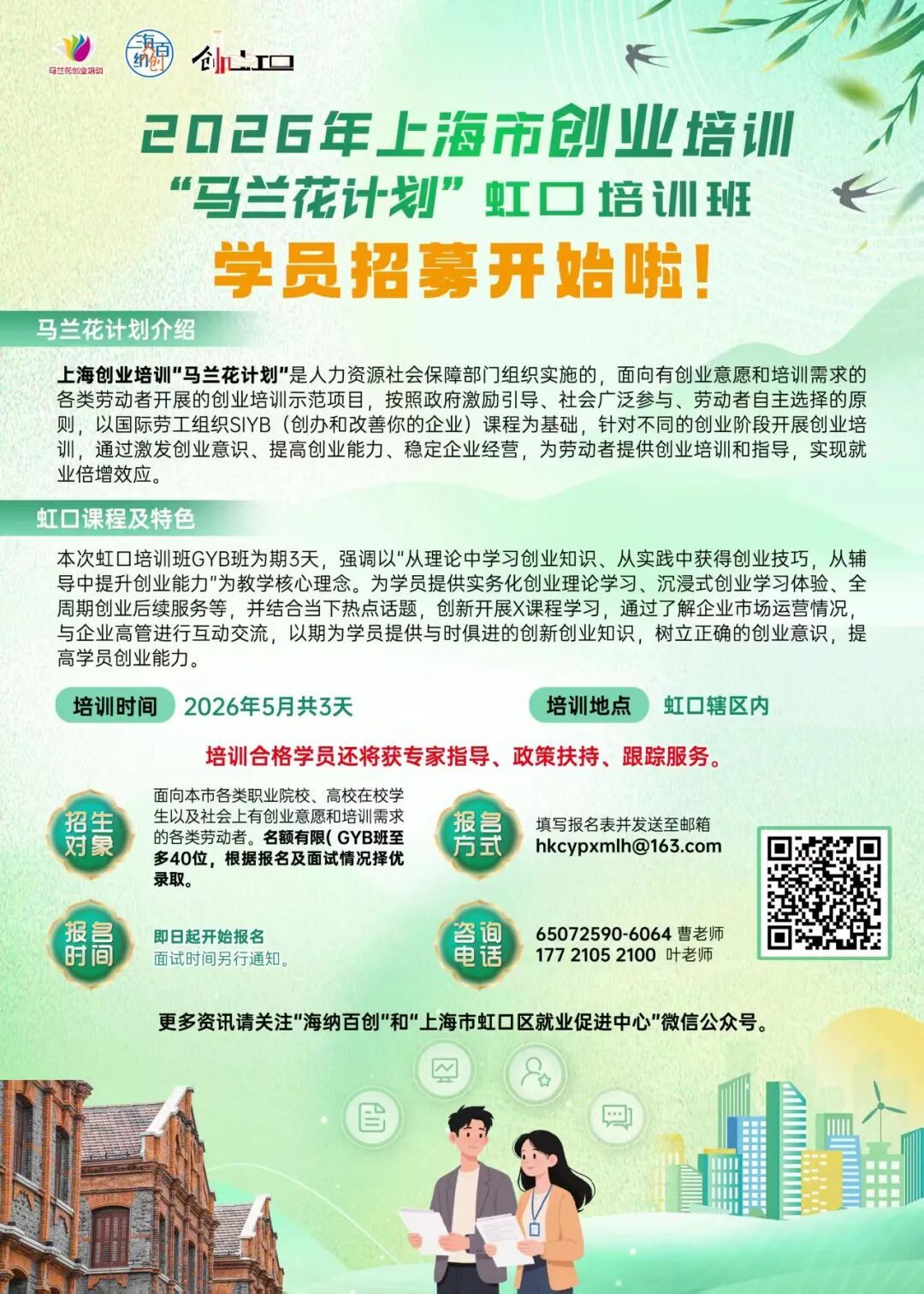记者从区就促中心获悉,2026年上海市创业培训“马兰花计划”虹口培训班学员开始招募。 培训时间为2026年5月,将为学员提供实务化创业理论学习、沉浸式创业学习体验、全周期创业后续服务等,并结合当下热点话题,创新开展X课程学习,了解企业市场运营情况,与企业高管进行互动交流。详见↓