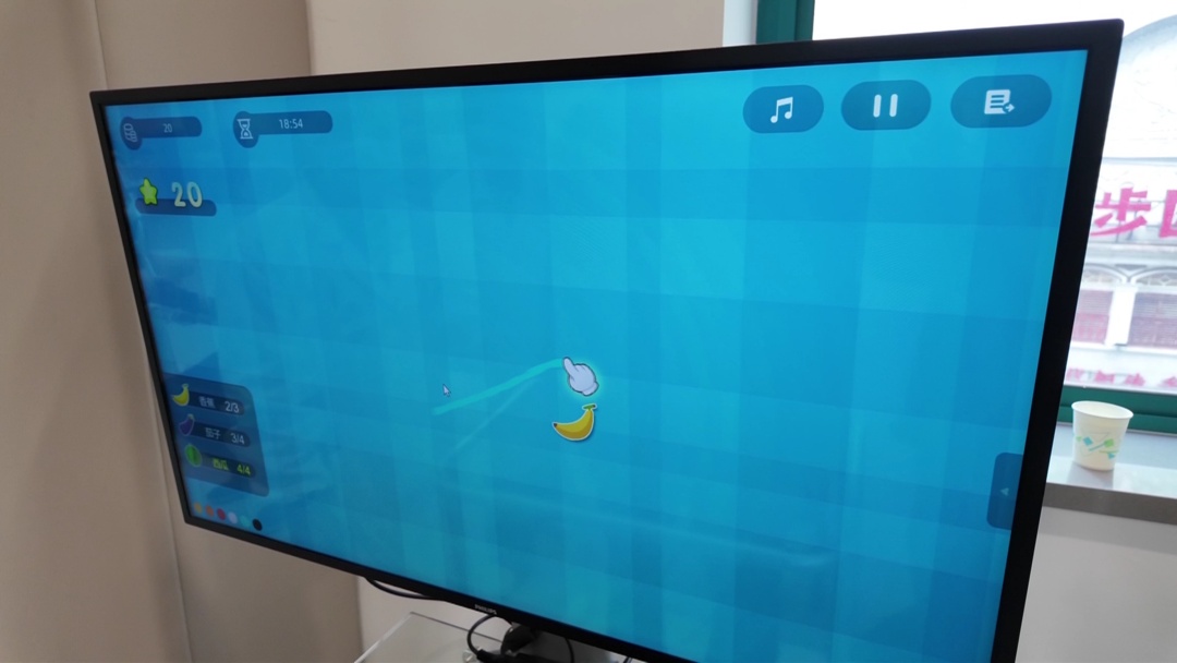 “余老伯体格较大,走路重心不稳,肢体僵硬。通过我们平台的平衡动态系统,借助小游戏促进他的下肢平衡。他通过重心移动,用小手指点击屏幕上的水果,锻炼下肢功能和整体体态协调性。以前他走路屈髋能力不行,脚抬不起来,容易摔跤,步态僵硬,这是帕金森病的典型动态步态问题。经过协调系统的训练,现在他身体协调能力增强,屈髋能力提升,下肢更有力量,走路也不容易摔跤了。经过半年的系统训练,他觉得训练既有趣又轻松,不再枯燥,信心大增。” 康复科主任徐娟娟告诉记者。