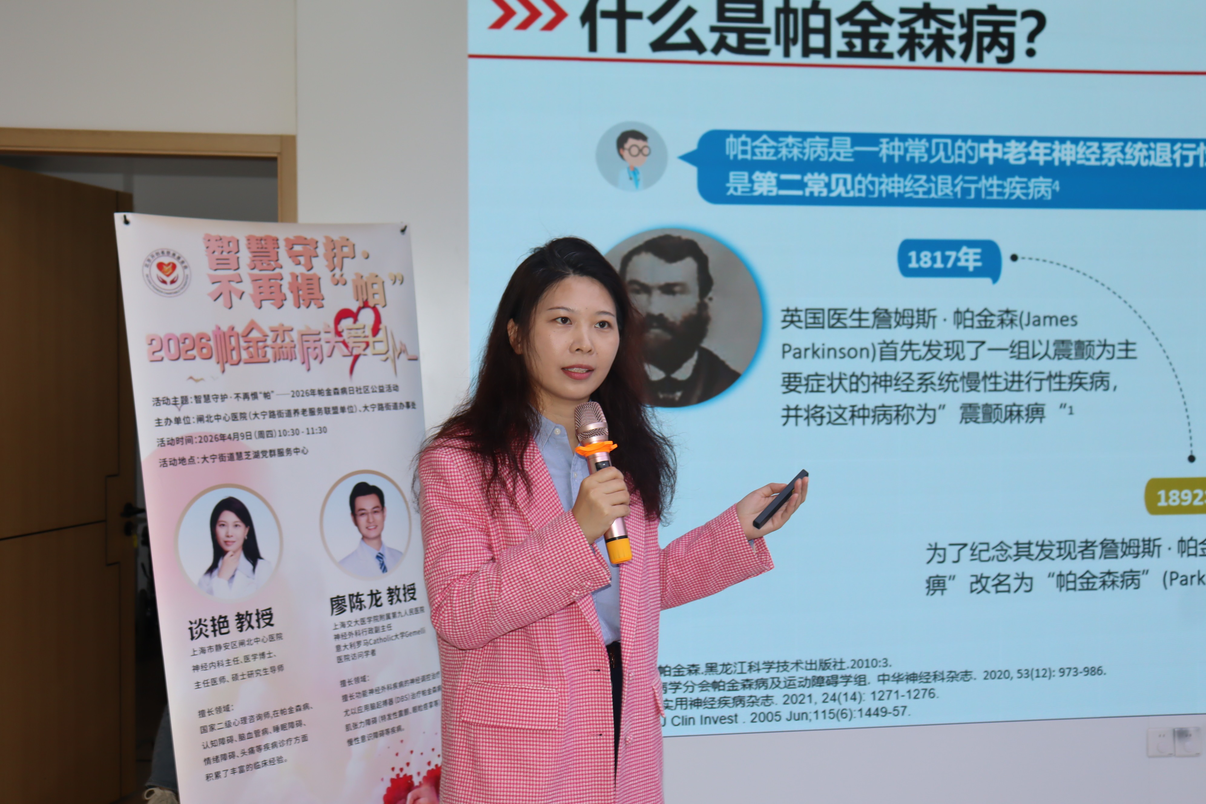 “这些非运动症状,往往比手抖出现得更早,大家要提高警惕。”她还现场教大家怎么简单区分帕金森病和普通的“腿脚不便”,鼓励有类似困扰的居民及时去神经内科看一看。