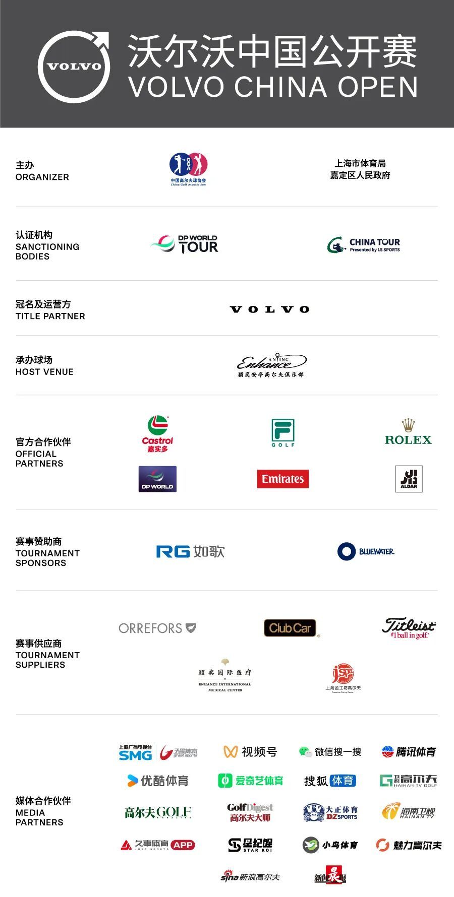 2026年沃尔沃中国公开赛由中国高尔夫球协会、上海市体育局、嘉定区人民政府主办,沃尔沃汽车冠名、运营及推广,是DP World巡回赛和中国巡回赛联合认证赛事。第31届沃尔沃中国公开赛将于2026年4月23日至26日在上海颖奕安亭高尔夫俱乐部举行。