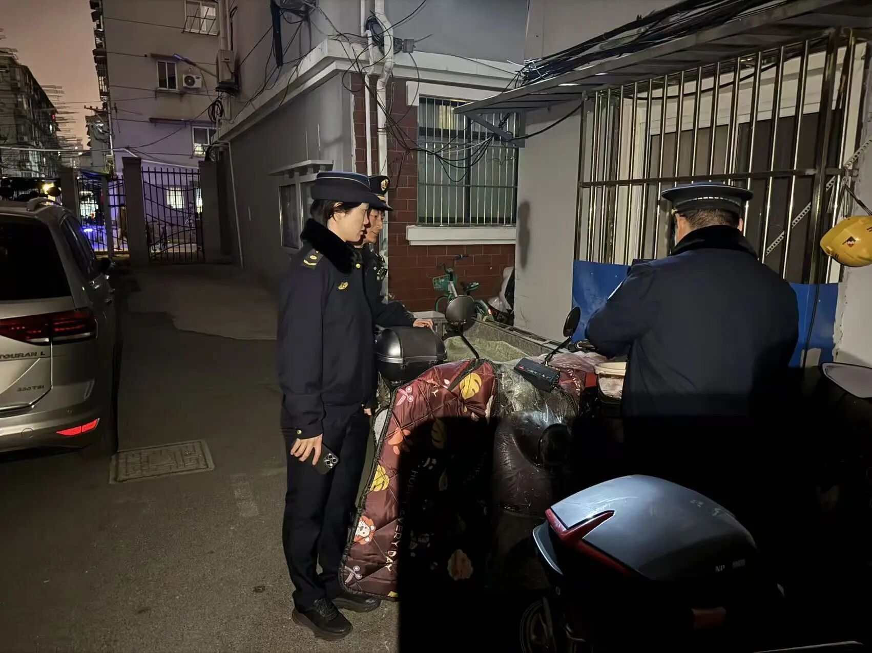 为筑牢社区安全防线,有效防范和遏制电动自行车违规充电引发的安全事故,切实保障群众生命财产安全,共和新路街道综合行政执法队开展电动自行车“飞线充电”夜间专项整治行动,深入老旧小区进行拉网式排查,及时消除安全隐患。