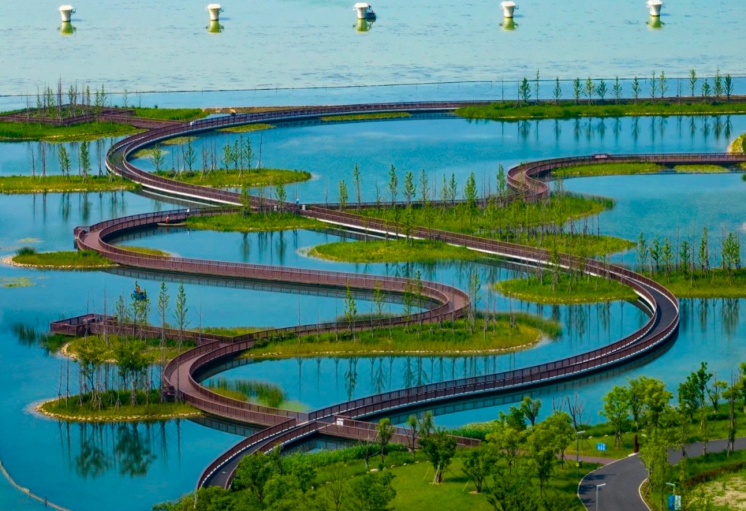 网红地标,一座优美的曲线桥,横跨沪苏两地,站在桥上可以体验“一步跨两省”的奇妙感觉。傍晚时分,这里是观赏日落的绝佳位置。