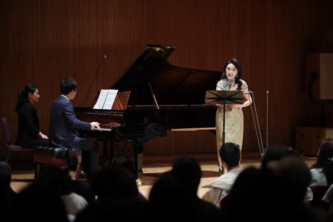 《梅花》以明代科学家徐光启在沪创作的诗词为蓝本,作曲家借梅花坚贞不屈、傲霜斗雪的品格,抒写上海文人的精神气节与城市深厚的文化底蕴,旋律兼具古典雅韵与当代审美,意境高远,余韵绕梁。该曲由著名歌唱家、上海音乐学院声歌系主任、中国民族声乐研究会副会长方琼演唱,张越担任钢琴艺术指导,一曲咏梅唱罢,风骨尽显,传递出上海千年不变的文化底气。同由方琼演唱、张越伴奏的《情人的笑脸》,则取材于20世纪著名词作家陈蝶衣的经典作品,旋律轻快浪漫,描摹出春雨初遇的美好与绵长思念,满含老上海的柔情与诗意,是城市文化基因最生动的音乐表达。值得一提的是,《梅花》全曲以上海方言演唱,面对“在本土观众面前用方言演唱”的巨大挑战,方琼坦言倍感压力:“找老师,找‘豆包’,学了半天,还被人嘲笑‘像苏州话’。”于是她加倍练习、不断调整,还专门找叶小纲辅导,在对作品加深理解的同时,上海话也有了长足的进步。