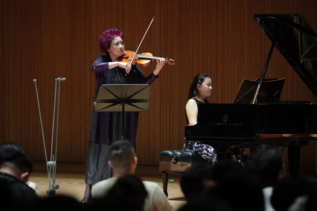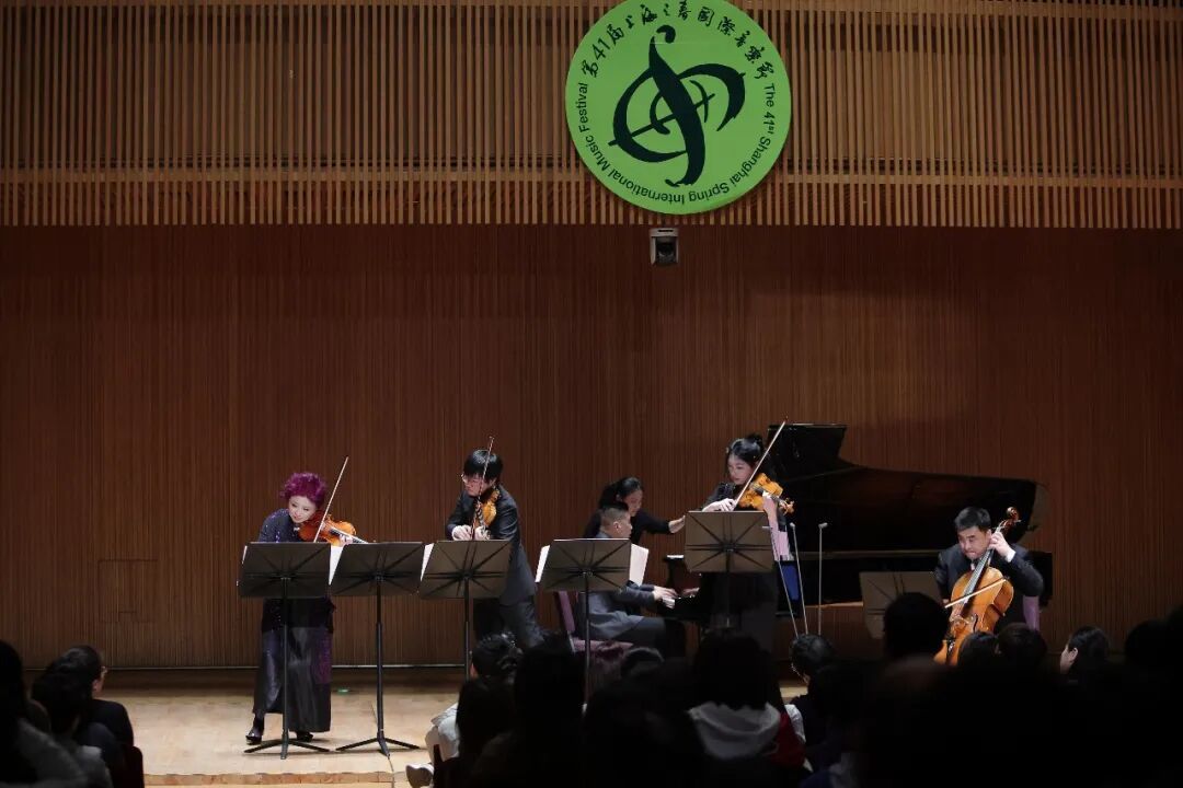 音乐会压轴之作《洋山水深》,是叶小纲聚焦新时代上海发展的匠心力作,以钢琴五重奏的丰富声部交织融合,层次饱满、气势灵动,生动描绘出新时代上海的深刻变革与蓬勃生机,如一幅徐徐展开的城市发展长卷,尽显国际化大都市的活力与魅力,奏响属于这个时代的昂扬乐章。该曲由徐惟聆演奏第一小提琴,上海音乐学院教师、目前唯一在独奏和重奏领域均获金钟奖的张润崯演奏第二小提琴,第六届东京国际中提琴比赛第一名、上海音乐学院研究生林怡秀担任中提琴演奏,黄北星、薛颖佳分别担任大提琴和钢琴演奏,五位艺术家强强携手,以浑然一体的和声共鸣,奏响新时代上海开放、奋进、包容的时代强音。薛颖佳表示,这部作品篇幅不长却内涵丰富,音乐画面感极强,段落层次清晰、音乐个性鲜明,细节饱满且充满巧思,演出效果很好。能够以这部精心打磨的钢琴五重奏作品亮相“上海之春”,与四位艺术家共同呈现叶小纲的创作精髓,是一次珍贵的艺术历练。林怡秀对作品的“画面感”深表认同,她说在演奏时,仿佛能看见洋山深水港繁忙有序的日常景象,如同上海城市宣传片中的无人机俯瞰的壮阔视角,音乐里满是现代上海的磅礴气势与蓬勃生机。
