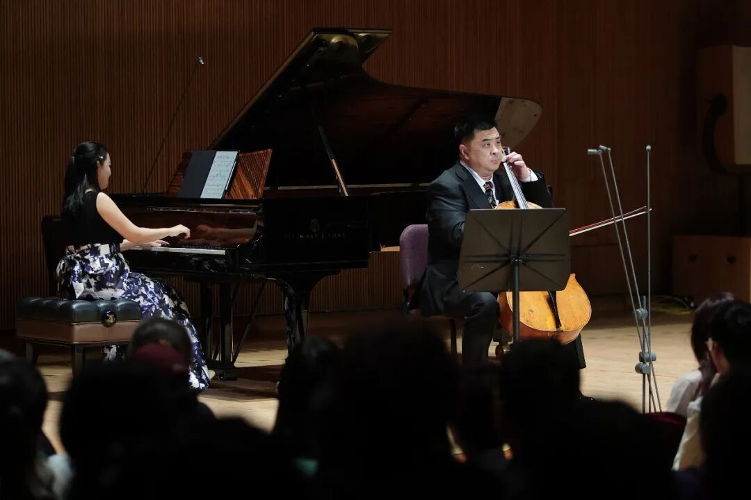 作为音乐会开篇与精神核心的《华亭赋——为大提琴与钢琴而作》,是叶小纲献给故土的深情之作。作品以上海古称“华亭”为文化根脉,深度萃取江南民间音乐的灵秀精华,在大提琴深沉醇厚的低吟与钢琴细腻婉转的和鸣之间,缓缓铺展上海从历史深处走来的悠长脉络。作曲家不仅通过作品诉说对这片土地刻骨铭心的眷恋,更以灵动笔触探索传统音乐元素在当代语境下的创新性表达。该曲由上海交响乐团大提琴首席、上海音协大提琴专委会主任黄北星执弦,上海音乐学院副教授、青年钢琴家与室内乐演奏家黄秋宁抚琴,两位艺术家以默契交融的演绎,让大提琴的深情吟唱触摸华亭千年文脉,每一个音符都化成对这座城市的温柔回望。黄北星表示,这是他首次演奏叶小纲的大提琴与钢琴作品。“作品逻辑严密、结构清晰,要求演奏者必须在严格遵循作品脉络的前提下去演绎,”他说,“叶小纲的作品常常在具备严谨的学术性与高超的技巧性的同时,拥有极强的可听性与旋律美感,在业内备受认可与喜爱。”