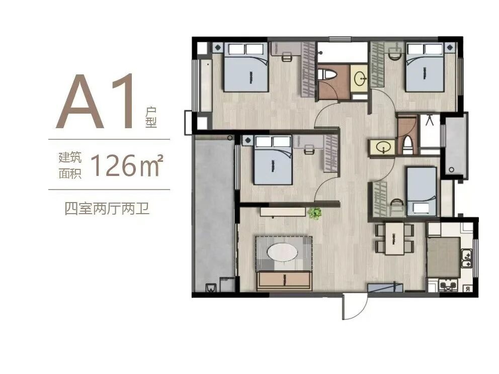 一期共提供1187套房源,户型类型丰富,可满足多元居住需求,涵盖约26平方米一居室、约52平方米一室一厅,以及约102至120平方米三居室和约125平方米四居室。无论是单身青年、小家庭,还是多代同住的家庭,都能在这里找到适配的居住空间。