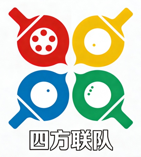 队名:四方联队(区人大、区城运中心、区司法局、区经委) 口号:四方聚力 乒出精彩 队徽: