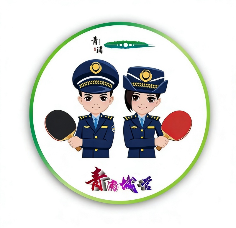 队名:青浦城管蓝乒乓球队 口号:执法为民守初心,乒搏向上践使命 队徽: