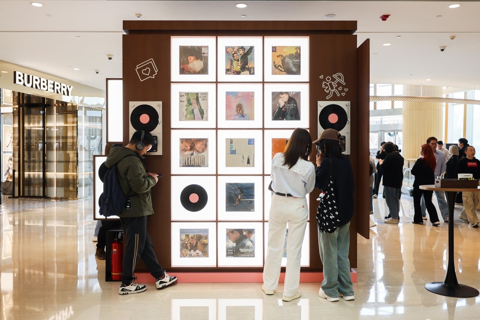 空间内陈列经典黑胶唱片,打造爱情经典、影视旋律、多元曲风三大主题展区。宾客可通过屏幕互动随机抽取纪念卡片,卡片背面记录上海恒隆广场25周年的发展里程碑。抽取后,可在三大主题展区寻找对应黑胶唱片,完成趣味音乐互动填空。于旋律与文字的交融呼应间,邂逅直击内心的情感共鸣。
