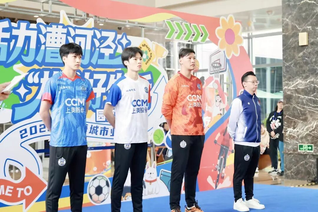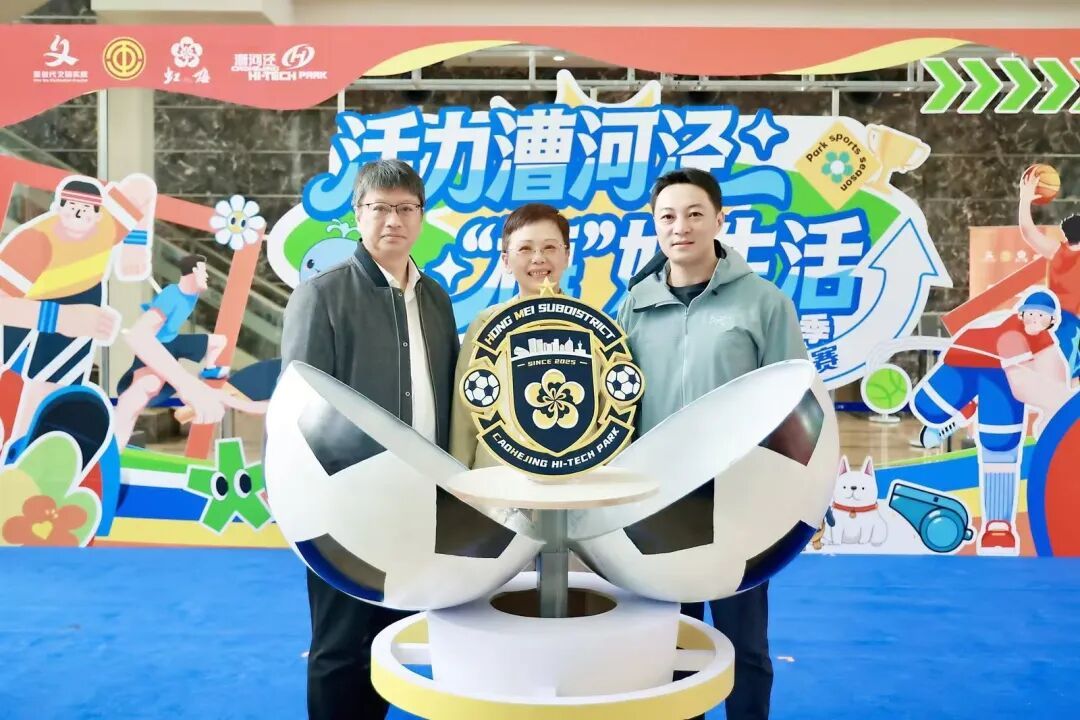 启动仪式上,一系列重磅环节率先点燃全场期待。虹梅街道足球队正式发布2026赛季全新设计的队徽与队服。新队徽融入了漕河泾开发区的产业地标元素,新队服以科技蓝为主色调,并获上美股份、晨光科力普等辖区企业冠名支持,标志着园区体育文化从“参与”向“认同”的深层演进。