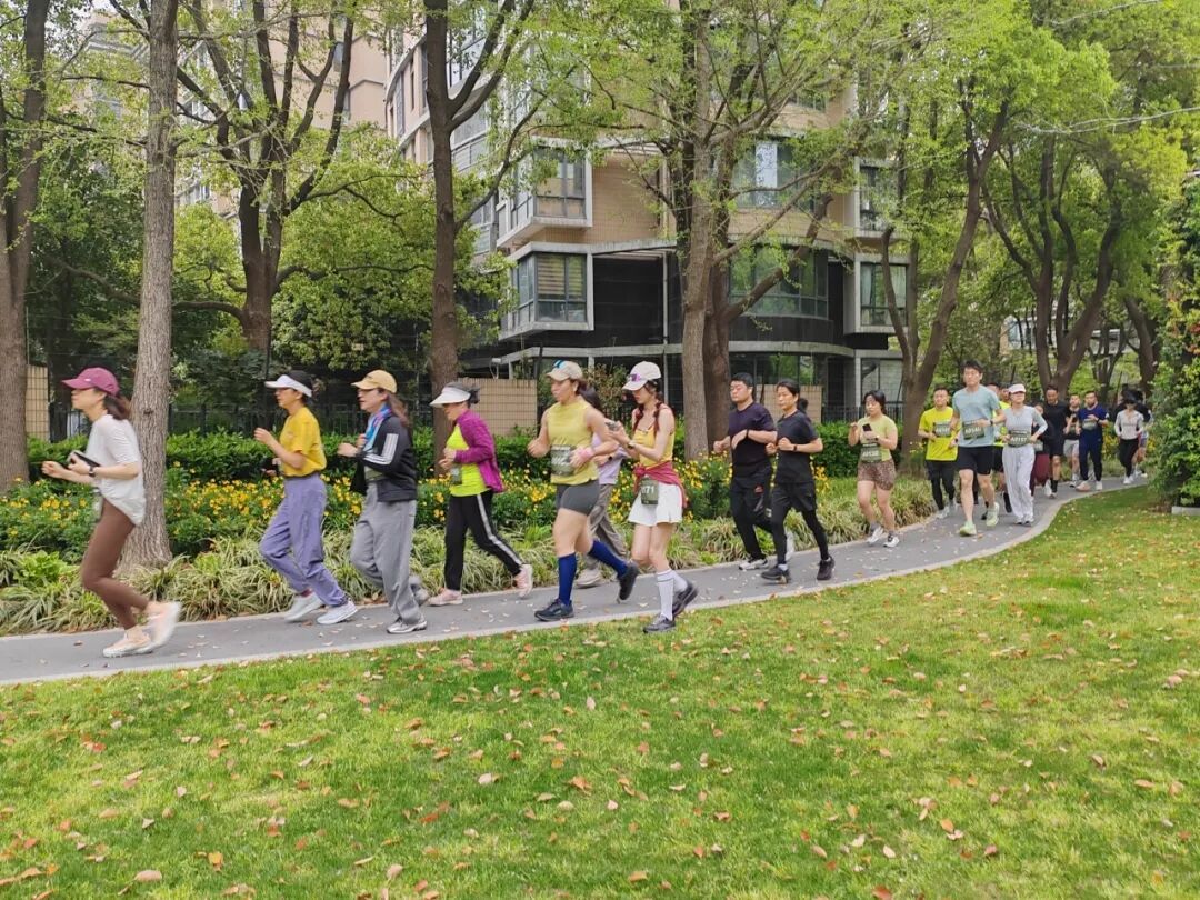 黄金城道两旁的绿植枝繁叶茂,鲜花开得正盛,微风拂过带来阵阵清香,跑者们穿梭在欧式风情的街区中,一边奔跑一边感受古北国际社区的独特韵味——既有国际化的精致格调,又有邻里相伴的烟火气息。