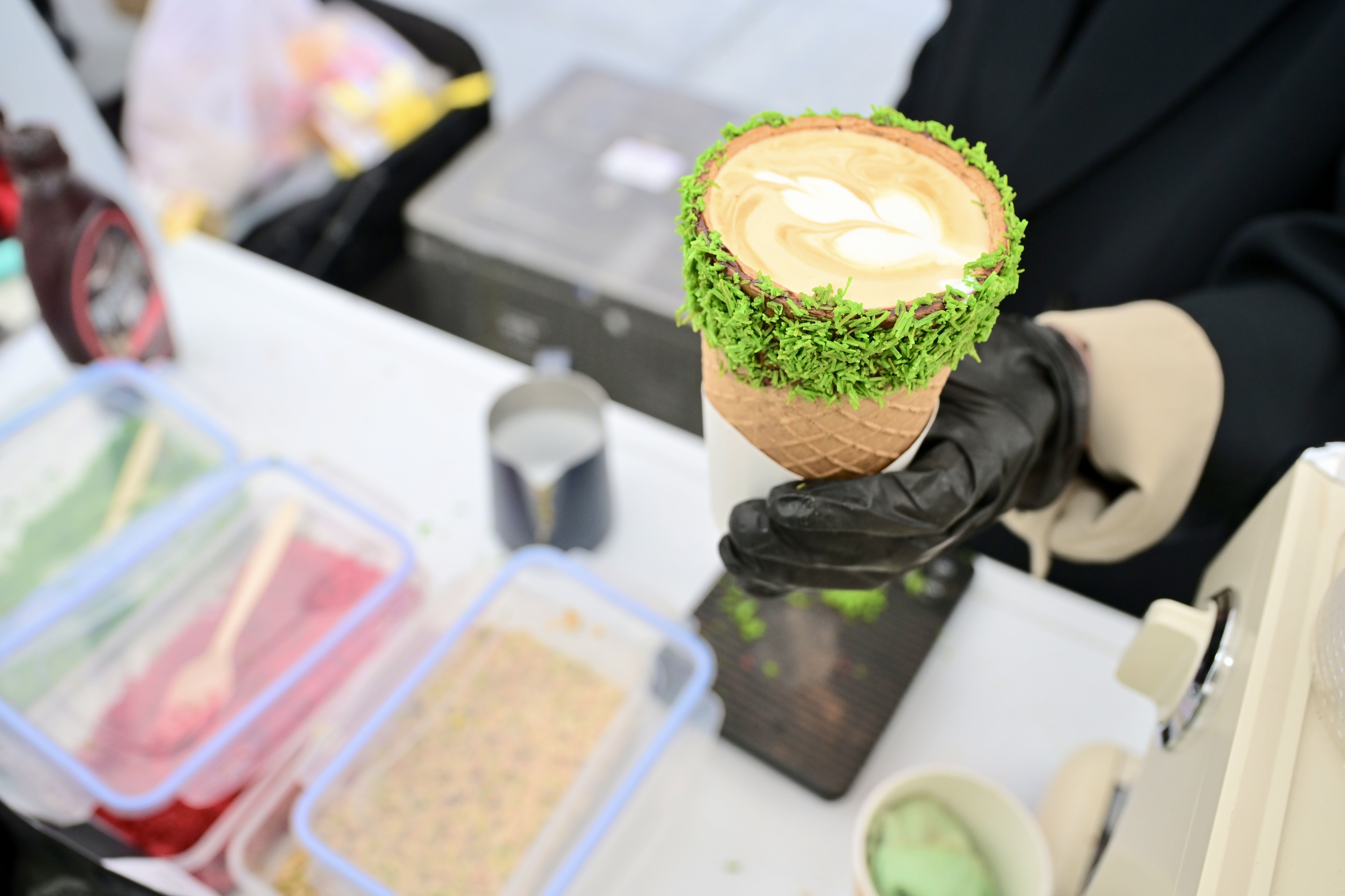 4月11日咖啡主题活动开幕当天,20余家咖啡、烘焙、甜品、轻食品牌在大宁音乐广场中心广场一字排开,现磨咖啡机的运转声此起彼伏。新鲜出炉的吐司与蛋糕的香气交织,同咖啡的醇厚风味一起,勾勒出春日限定的味觉盛宴。