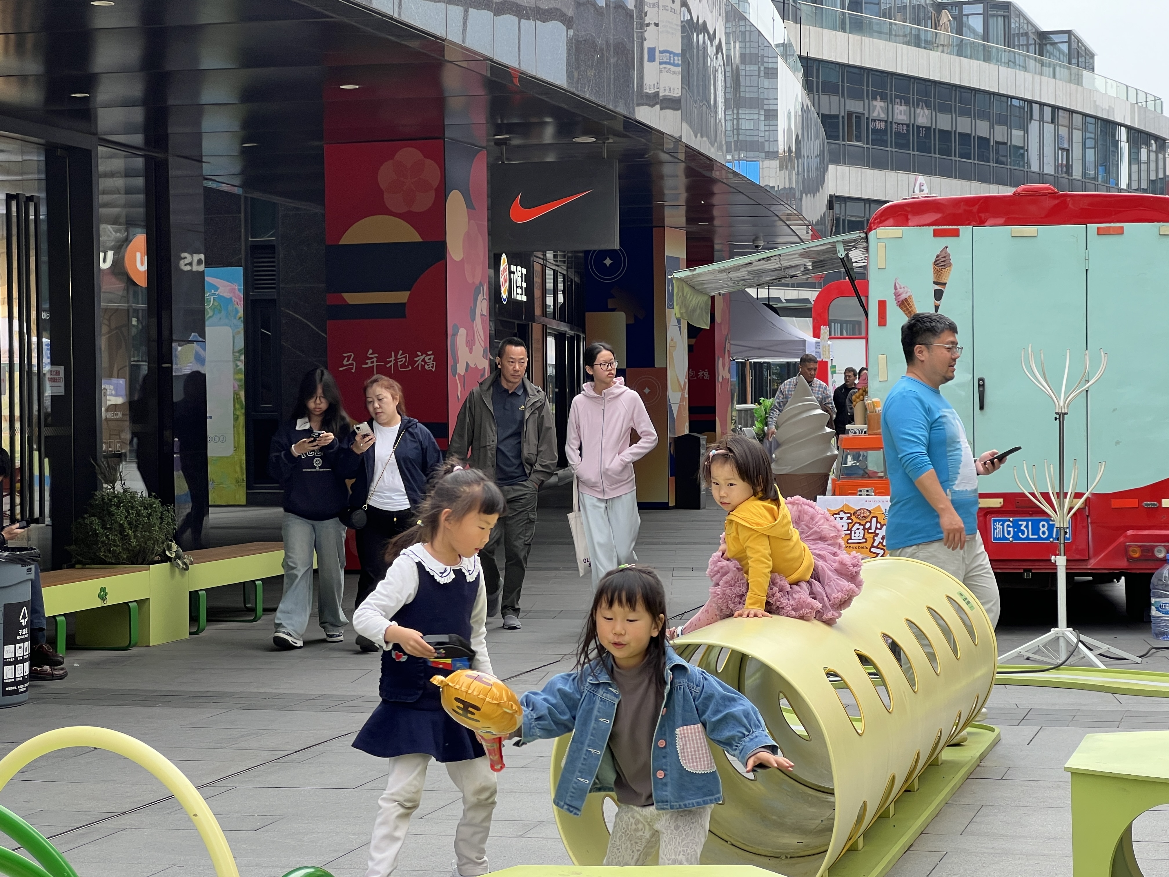 下午2时,NINI兔主题巡游将现场氛围推向高潮。巨型NINI兔随着音乐摇摆穿行于市集中,与小朋友和宠物们亲密互动,引得路人纷纷合影。