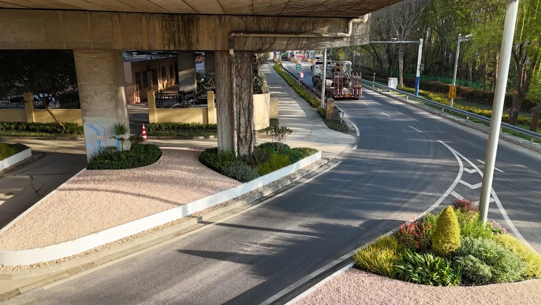 沪金高速剑川路匝道区域环境美化项目实施范围约2.6公顷,涵盖绿化品质提升、花坛景观改造等多项内容。项目历时27天高效推进、圆满完工,为区域门户精心打造出一张生态优美、特色鲜明的景观新名片。